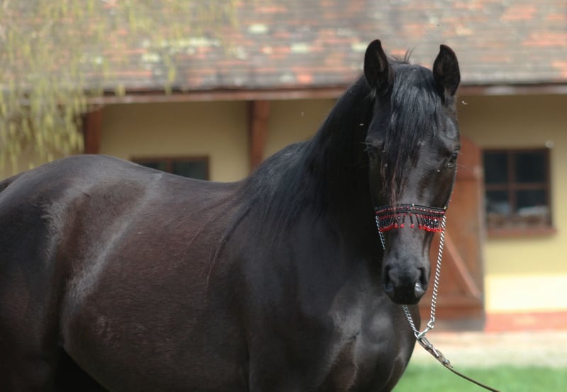 Prachtige 4-jarige merrie, zwart homozygot door afstamming, op zoek naar een nieuw thuis. Correcte, stevige bouw, uitstekende bewegingen. Ze is erg groot, geschatte uiteindelijke hoogte rond de 1,60 m, momenteel al een stevige 1,58 m (laatste foto)! Mooi gezicht, prachtige lange hals, correcte benen en hoeven. Bijna geen wit, volledig zwart lichaam en benen, slechts een kleine ster op haar voorhoofd. Interessant pedigree Vaderlijn: Kuhailan Afas of ar. 1930, geïmporteerd 1931 Gumniska (PL) Moederlijn: Abeyah of ar. 1896, geïmporteerd 1906 H. Davenport (VS) In haar pedigree zijn beroemde lijnen te vinden zoals Hafati Vogue, Simeon Shai, The Desperado, Ali Jamaal, Bei Shah, Alegro, Probat en meer... Ze heeft een opvallende houding. Perfect voor de fokkerij, show of endurance/rijden – ze draagt een van de beste endurance bloedlijnen ooit (Wagram****). Geregistreerd bij PASB. Klaar voor het fokseizoen. Hogere prijsklasse. WhatsApp +48 513 179 245