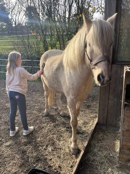 Zum Verkauf steht ein 7-jähriger Agidienberger Wallach mit Stammbaum (Kreuzung aus Isländer und Paso Peruano) mit einem Stockmaß von ca. 1,48 m. Er überzeugt durch seine außergewöhnliche Nervenstärke, Menschenbezogenheit und Verlässlichkeit. Er ist gesund, robust, barhuf und offenstalltauglich – auch in gemischten Herden. Regelmäßige Pflege sowie tierärztliche Betreuung sind selbstverständlich erfolgt. Kein Ekzem. ⸻ 🌿 Erfahrung im therapeutischen Bereich Er war bereits im Einsatz mit Kindern – auch mit Handicap – und zeigte sich dabei äußerst ruhig, geduldig und souverän. Er lässt sich von Kindern sicher führen, bleibt auch in ungewohnten Situationen gelassen und vermittelt Vertrauen durch seine klare, ausgeglichene Art. Sein ruhiger Charakter ist keine Momentaufnahme, sondern im Alltag gefestigt. ⸻ 🐎 Ausbildung & Reitbarkeit Filou ist solide angeritten und vermittelt im Gelände Sicherheit – auch alleine. Er verfügt über eine ehrliche, altersgerechte Grundausbildung und steht auf einer guten Basis. Dabei ist er stets motiviert und lernwillig und arbeitet gerne mit seinem Menschen zusammen. In den richtigen Händen kann er sich weiterhin ruhig und positiv entwickeln und sein Potenzial als entspannter Freizeitpartner voll ausschöpfen. ⸻ Er eignet sich ideal für: • Familien mit Kindern • Wiedereinsteiger • Freizeitreiter • Therapieeinrichtungen • Menschen, die ein verlässliches, ehrliches Pferd suchen ⸻ 🧠 Charakter • klar im Kopf • absolut menschenbezogen • geduldig und nervenstark • brav im Umgang • eher rangniedrig und konfliktmeidend ⸻ 📍 Verkaufsgrund Er wird abgegeben, da die aktuelle Herdenkonstellation für ihn langfristig nicht optimal ist. Mein anderer Wallach unterdrückt ihn leider stark. In einer passenden Gruppe oder bei individueller Haltung kann er sein ruhiges, freundliches Wesen voll entfalten. Filou wird ausschließlich in beste und verantwortungsvolle Hände abgegeben. Es handelt sich ausdrücklich nicht um einen Notverkauf. Wir nehmen uns die Zeit, den passenden Menschen für ihn zu finden. Gewünscht ist ein entspanntes Freizeit-Zuhause ohne sportlichen Leistungsdruck, in dem er einfach Pferd sein darf und als treuer Partner geschätzt wird. Filou ist kein Pferd für sportlichen Ehrgeiz oder Leistungsdruck. Er ist ein feines, ehrliches Wesen, das in einem schönen, wertschätzenden Umfeld aufblüht. Unter Druck zieht er sich eher zurück – in vertrauensvoller Zusammenarbeit zeigt er hingegen seine ganze Stärke und Verlässlichkeit.