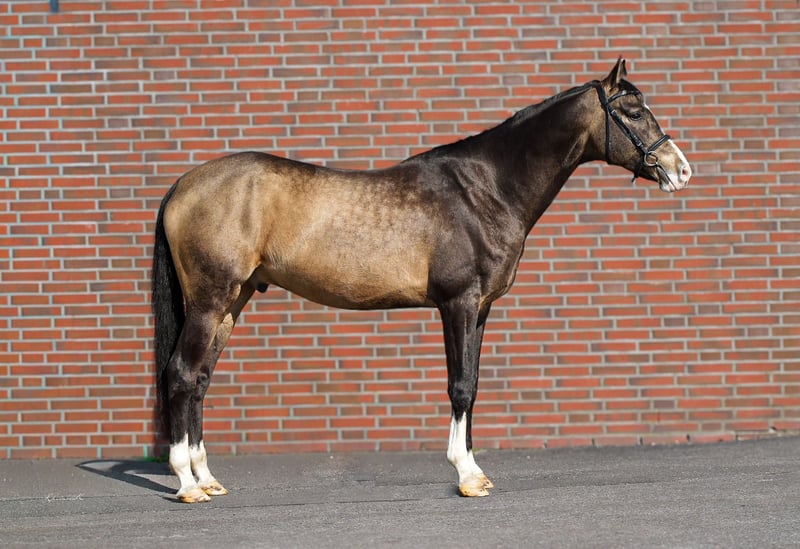 Mr. Bond to przepiękny ogier akhal-teke o wyjątkowym charakterze. Dzięki doskonałym podstawowym chodom, harmonijnej, pełnej typowości sylwetce oraz unikalnej umaszczeniu przyciąga wszystkie spojrzenia. Przekonuje nie tylko wizualnie, ale także sportowo: Mr. Bond posiada duży potencjał skokowy i zawsze jest gotowy do pracy, wykazując czujność i zaangażowanie. Jego zrównoważony, przyjemny charakter czyni go niezawodnym partnerem na co dzień. Ogier jest dobrze zbudowany, poprawny pod względem fundamentów i wyróżnia się swoją atletycznością oraz naturalną obecnością. Bezpośrednio od hodowcy. Oczywiście dostępne są aktualne zdjęcia rentgenowskie bez zmian. To wyjątkowa koń dla jeźdźców poszukujących czegoś niezwykłego.