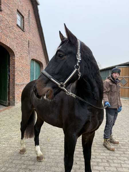 Zum Verkauf steht ein vielversprechender zweijähriger Alt-Oldenburger Wallach von Dedo, geboren am 02.05.2023. Eckdaten: - Rasse: Alt-Oldenburger - Geschlecht: Wallach - Farbe: Dunkelbraun - Geboren am: 02.05.2023 - Erwartetes Stockmaß: ca. 165 cm Beschreibung: Dieser junge Wallach überzeugt durch seinen tollen Typ, ein korrektes Fundament sowie sehr gute Grundgangarten. Er besitzt einen ehrlichen, menschenbezogenen Charakter, ist äußerst umgänglich und macht im täglichen Umgang viel Freude. Von Anfang an wurde er regelmäßig und liebevoll an der Hand gearbeitet, kennt das Fohlen-ABC und zeigt sich dabei stets kooperativ – ohne dabei verzogen zu sein. Ein echtes Nachwuchstalent mit besten Voraussetzungen für alle Disziplinen – ob Freizeit, Dressur oder Fahrpferdeausbildung – dieser Wallach bringt alles mit, was man sich von einem vielseitigen Reitpferd wünscht. Weitere Infos & Besichtigung gerne auf Anfrage. Standort: Hengstweide Wesermarsch Preis: 7800 € Kontakt015228008206 oder sdiers@web.de Wir freuen uns auf Ihre Nachricht!