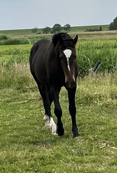 For sale is a promising two-year-old Oldenburg gelding by Dedo, born on May 2, 2023. Details: - Breed: Oldenburg - Gender: Gelding - Color: Dark brown - Date of Birth: May 2, 2023 - Expected height: approximately 16.1 hh Description: This young gelding impresses with his excellent type, a correct foundation, and very good basic gaits. He has an honest, human-oriented character, is extremely friendly, and brings great joy in daily handling. From the beginning, he was regularly and lovingly handled on the lead, is familiar with basic foal training, and always shows cooperation—without being spoiled. A true young talent with excellent potential for all disciplines—whether leisure, dressage, or driving training—this gelding possesses everything one could wish for in a versatile riding horse. Further information and viewing available upon request. Location: Hengstweide Wesermarsch Price: €7,800 Contact: 015228008206 or sdiers@web.de We look forward to your message!