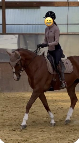 Elegant Mare – Dressage Partner For sale is an impressive mare, born in 2016. With her striking chestnut coat and a height of 16.0 hh, she is an elegant presence both visually and in size. She also shows great potential as a broodmare. This well-ridden dressage partner impresses with her balanced and eager-to-learn nature. She has a solid basic training and already demonstrates promising advances in dressage work. Thanks to her friendly temperament, she is suitable for advanced riders as well as ambitious young talents. She is healthy, regularly x-rayed, and well cared for. The mare is ready to achieve her next successes in the dressage arena and looks forward to a new, responsible family. Please feel free to contact me for more information and videos.