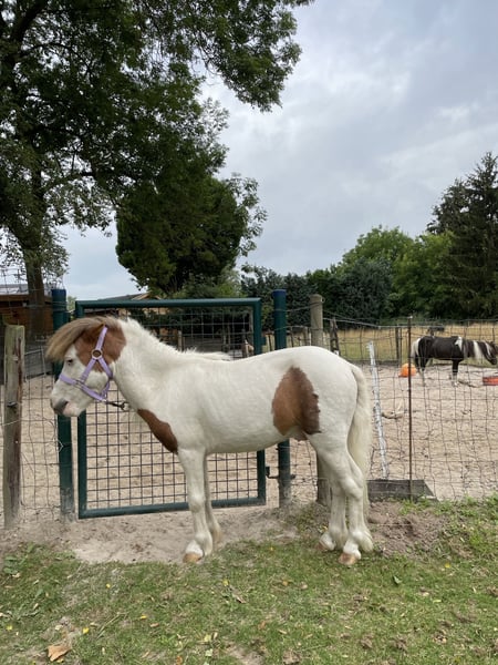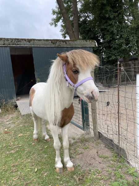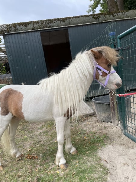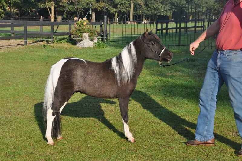 Te koop Edele Miniatuurpaard Hengst met papieren en paspoort, zie documenten. Zeer klein van maat met 75 cm. Vosbont met een mooi staalblauw oog. Braaf karakter. Vader prachtige 1e premie AMHA Hengst. ,zie foto ‘s 4 en 5.en video