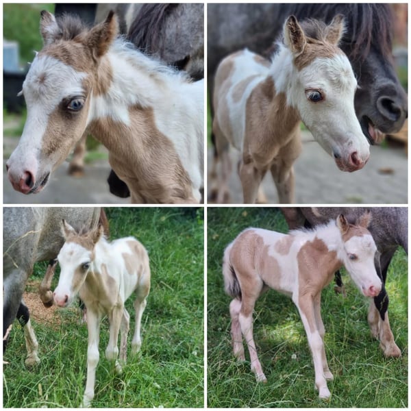 Wir verkaufen unseren VMS Vegas Obi-Wan Kenobi, geboren im Juni 2024. Er hat die Traumhaftschöne Farbe Buckskin Tovero (Tobiano und Overo LWO+) mit zwei strahlend blauen Augen. Er hat sehr raumgreifende Gänge und ist ein eleganter Bursche. Er hat AMHA Papier und ist ACAN Negativ. Obi-Wan kennt alles wasw man in seinem alter kennen muss. Aktuell ist er 82cm groß. Wer einen echten Eyecatcher sucht, kommt an diesem schicken American Miniature Horse Hengst nicht vorbei. Mehr Bilder und Videos gerne auf Anfrage. Ratenzahlung auch möglich, wenn der Platz stimmt.