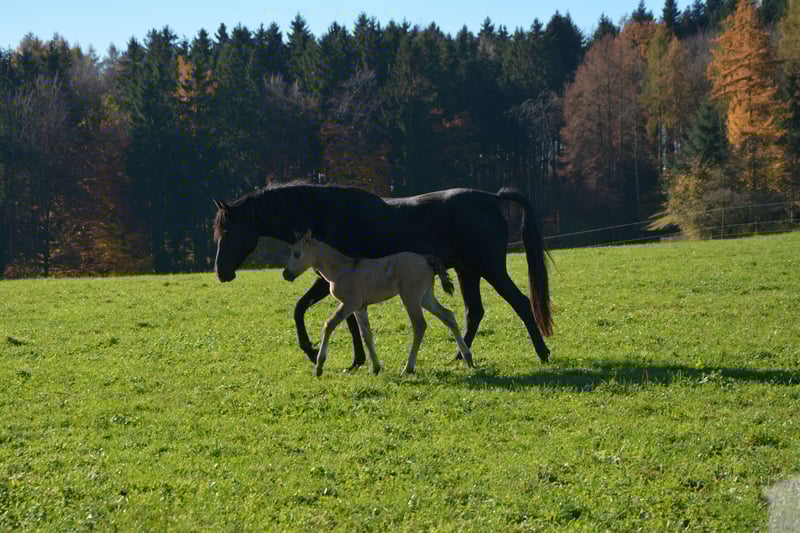 Rodowodowa, wyjątkowo typowa młoda klacz – z sercem, ruchami i przyszłością! Oferujemy tutaj wyjątkową młodą damę z naszej hodowli Morganów: Nasza urodzona 27 października 2025 roku, czysto rasowa klacz American Morgan, to prawdziwy skarb – zarówno pod względem charakteru, jak i pochodzenia. American Morgan Horse to jedna z najstarszych i najbardziej szlachetnych ras koni Ameryki Północnej. Znana z wszechstronności, wytrzymałości, inteligencji i przyjaznego usposobienia, uważana jest za „konną wszechstronną” – zarówno pod siodłem, w terenie, przed wozem, jak i w hodowli. Morgan jest mocno zbudowany, elegancki w ruchu, z mocnym fundamentem i jasnym umysłem. Charakteryzuje się zrównoważonym charakterem, odwagą i niezachwianą lojalnością wobec człowieka – to rasa, która zachwyca zarówno serce, jak i rozum. Nasza młoda klacz rośnie w 100% czysto rasowa, w zdrowej strukturze stada – razem z ogierem, klaczami i źrebiętami, co zapewnia jej stabilne zachowanie społeczne i zdrowe poczucie własnej wartości. Już teraz wykazuje niezwykłą przyjazność wobec ludzi, jest bardzo ufna, ciekawa, przytula się i podchodzi do nowości z dużym zainteresowaniem i spokojem. Na pastwisku prezentuje się ruchliwie, energicznie i pełna wigoru – prawdziwa gwiazda z dużym urokiem! Jej kolor wciąż się rozwija – prawdopodobnie wyrośnie na buckskin lub grullo. • Matka: piękna, typowa klacz Trappe, bardzo kochająca, przyjacielska, chętna do nauki i pracowita. • Ojciec: ciemny ogier Grullo, wyróżniający się inteligencją, siłą, pełnym spokojem nerwowym i bliskością do człowieka – odważny i charyzmatyczny, jak rzadko który. Ta kombinacja zapowiada źrebię z dużym potencjałem – zarówno na rekreację, pokaz, jak i do hodowli. Nasza klacz będzie dostępna najwcześniej od maja 2026 roku. Do tego czasu będzie rosła w swoim stadzie, będzie regularnie odwiedzana, aby zbudować zaufanie między nią a przyszłym opiekunem. Oddajemy ją tylko w najlepsze ręce i w warunki odpowiednie dla jej potrzeb – otwarty boks rodzinny, pferdegerechte środowisko, jest dla nas szczególnie ważne. Prawdziwa klacz serca dla osób, które szukają czegoś wyjątkowego – inteligentna, szlachetna i pełna radości życia. Zainteresowanych prosimy o kontakt osobisty i chęć poznania na miejscu!