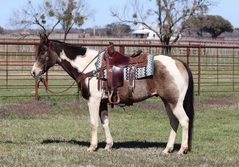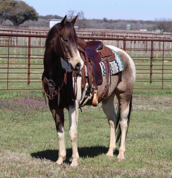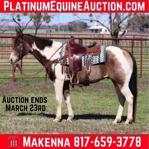 ONLINE AUCTION Place your bids at www.PlatinumEquineAuction.com Starting Bid $3500 Auction ends March 23rd, 2025 Need a new saddle? Check out White Rock Saddles on our website or Facebook! If you are looking for a good, solid, affordable gelding to add to your barn check out this one! Raja is a very solid grade paint gelding and stands at 15.1 hands tall and is 9 years old! Raja is built to last and has all the ability in the world. He is a blast to ride and has the smoothest gates ever! This guy will go absolutely anywhere you point him. Raja has been ridden outside on the ranch most of his life making him super fun and safe out on trail. Very easy to control, super fun ride! He has been around wildlife, blowing tarps, heavy equipment, barking dogs, and lots of other crazy! He loves getting attention, to be groomed and he loves his baths. This gelding loads/unloads in the trailer with ease and will stand tied up all day like a gentleman. This gelding is a pleasure to be around making him very desirable. He’s gonna turn heads and he will keep you safe! Located in Lipan Texas We can help arrange shipping anywhere in the US, Hawaii, Canada Please call or text Makenna Hartzell 817-659-3778 for more information. ONLINE AUCTION Place your bids at www.PlatinumEquineAuction.com Starting Bid $3500 Auction ends March 23rd, 2025 Need a new saddle? Check out White Rock Saddles on our website or Facebook!