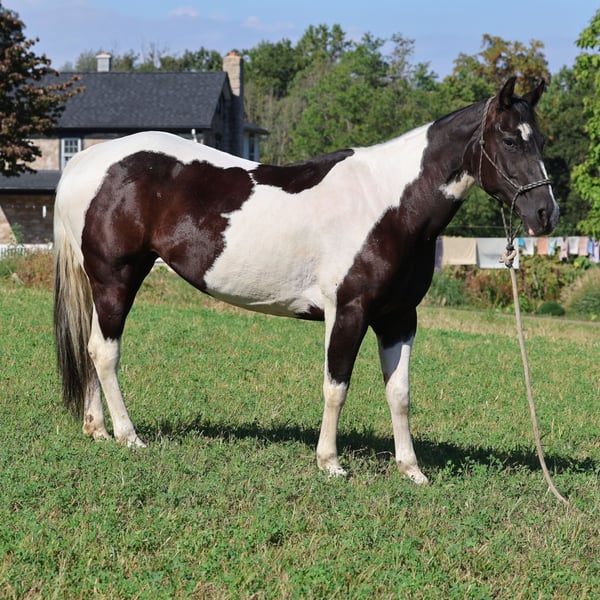 Looking for a wonderful trail partner and an excellent broodmare? Look no further than Ashley, a stunning 12-year-old, 15 hand Pinto Paint mare. Ashley is a joy to ride and excels on the trails, where she is both calm and confident. She's a true trail enthusiast who loves to be out and about. Ashley would make an all-star broodmare and would be a true asset to a program looking for foals with great qualities & striking markings. While Ashley does have some mild shoulder discomfort, it's important to note that this does not prevent her from being a willing and enjoyable trail horse. Her love for being out on the trails is a testament to her spirit and heart. Ashley's personality and love for the trail make her a wonderful companion.