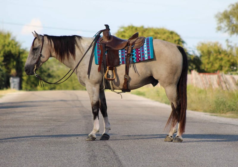 ONLINE AUCTION Place your bids at www.PlatinumEquineAuction.com Starting Bid $3500 Auction ends September 15th, 2024 Need a new saddle? Check out White Rock Saddles on our website or Facebook! Everyone meet “Rio” this guy has a heart of gold! Rio is a 12 year old buckskin paint gelding standing 15 hds tall . Rio will check all your boxes when looking for your next forever partner . He’s stout made , gorgeous color and is always ready to go out and get the job done . Rio has been used around the ranch to gather cows , check fences and load trucks on . He loves to hit the trails and will go all day long for you . He is a very confident guy and always willing to please. Rio goes wherever you point him , he’s been hauled on many over night camping trips to the national parks. He will go up and down hills , cross logs , bridges , and from the smallest creeks to the deepest water he will walk right in every time with zero hesitation. He is not bothered by campers and wildlife he handles it all with ease . Rio rides out in a group or alone , he will go wherever you place him in the group front , middle or the end . He will ride out down the busy hwy for you with heavy traffic including semi trucks flying by. In the arena he will walk , trot and lope circles always picking up the correct leads . He is very user friendly and always stays gentle taking care of his rider . Rio speaks for himself , he’s a super sweet gelding with a heart the size of Texas . Rio is the complete package that doesn’t disappoint. He is easy to catch , stands tied quietly , stands for the farrier , loads and unloads off the trailer like a perfect gentleman. He stands to be mounted, easy to saddle and bridle never giving you any issues. Contact us to come try him, or we can set up a FaceTime also. If you need help with transport don’t hesitate to ask we have a list of reputable haulers that can get him safely to your doorstep world wide. Located in Stephenville, TX. Contact M $ Performance Horses Michelle 661-817-9120 with any questions. ONLINE AUCTION Place your bids at www.PlatinumEquineAuction.com Starting Bid $3500 Auction ends September 15th, 2024 Need a new saddle? Check out White Rock Saddles on our website or Facebook!