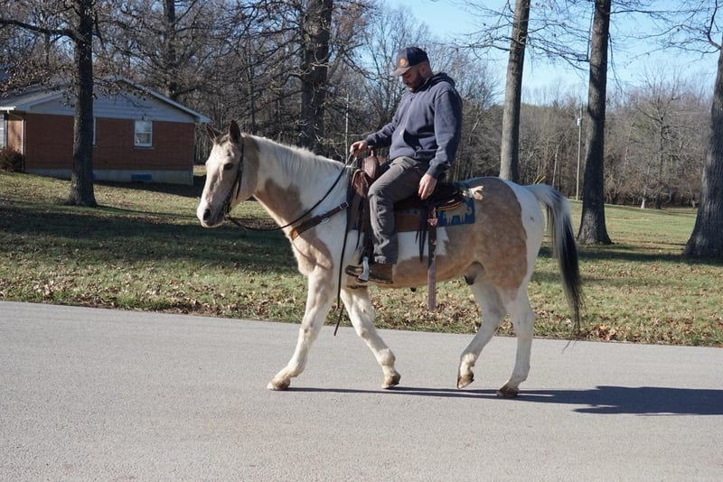 ONLINE AUCTION Place your bids at www.PlatinumEquineAuction.com Starting Bid $3500 Auction ends January 5th, 2024 Need a new saddle? Check out White Rock Saddles on our website or Facebook! Cookie Dough is a 14 year old Buckskin Paint gelding! He stands 14.3 hands tall and has a chunky build! He is cute as a button! Has pretty markings and has a great personality! He is a very laid back horse that is very simple to ride! The best part about him is he is safe! His favorite speed is slow but he will get up and go when asked! He will walk, trot, and lope! His favorite place to be is on the trails! He has been ridden all over Kentucky and Tennessee on over night camping trips! He is very seasoned out in the woods! He has been ridden in parades as well! He is easy to catch and handle and can stay fat on air basically! Super easy keeper! If you’re looking for a laid back teenage gelding to take care of you then don’t miss out on Cookie! He is cute as a button and an easy operator! Located in Rineyville Ky! Call Clayton Ryan 270-766-2641. ONLINE AUCTION Place your bids at www.PlatinumEquineAuction.com Starting Bid $3500 Auction ends January 5th, 2024 Need a new saddle? Check out White Rock Saddles on our website or Facebook!