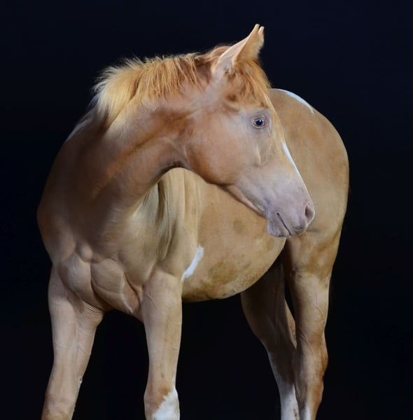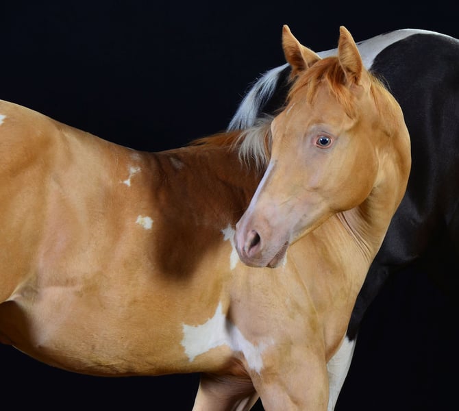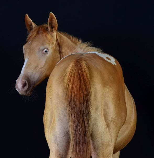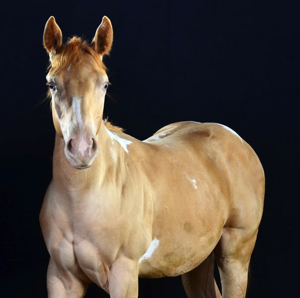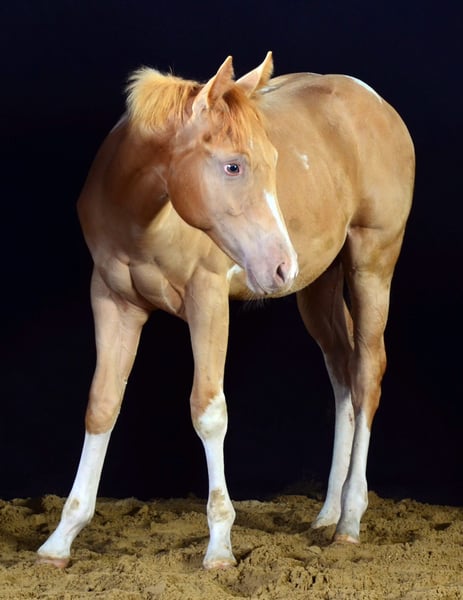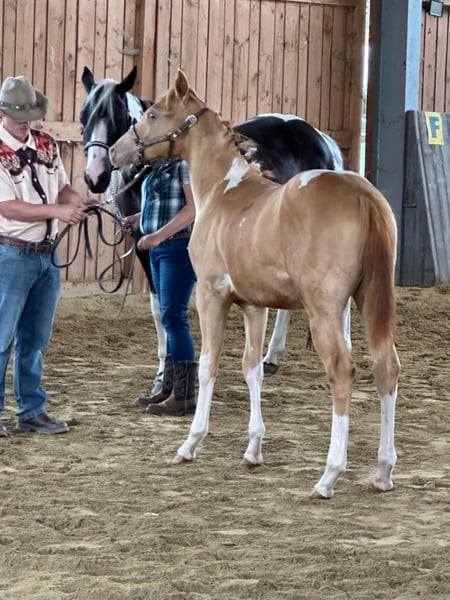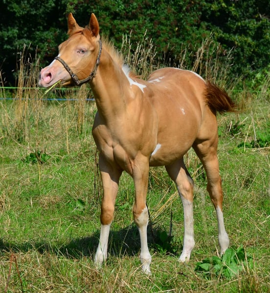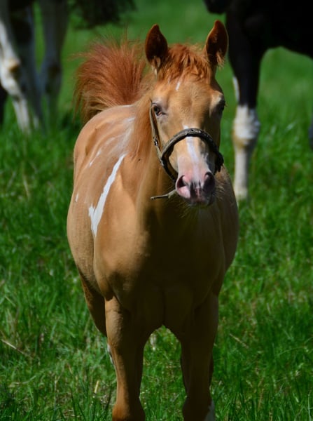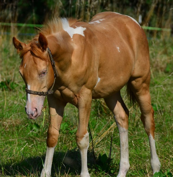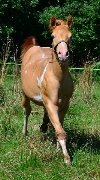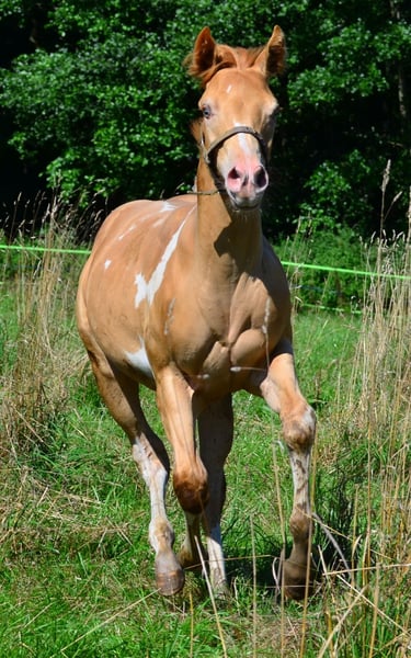 Jess carries big names like Doc Chex in his pedigree. He is well-built, has great movements, and talent for many maneuvers. He will grow big and strong, and will certainly be suitable for tall riders as well. He is naturally 7 Panel N/N and has papers from the APHA and a passport from the PHCG. Premium foal at the PHCG with an impressive score of 7.85.