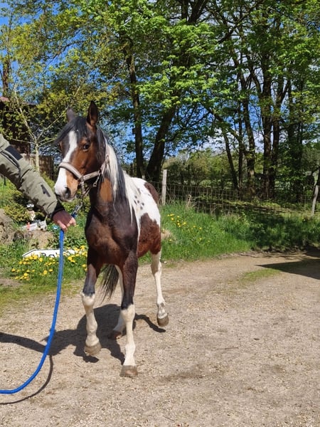 Hola, soy Spirit. La nueva manada no me acepta y me están molestando, mordiendo, persiguiendo, etc. Por eso, busco un nuevo hogar a través de este anuncio. Fui castrado en febrero. Tengo 2 años y mido aproximadamente 133 cm. Soy un potro de raza Paint Horse, sin papeles, y ahora se me vende rápidamente y a un precio reducido, ya que de lo contrario tendría que estar solo, lo cual no queremos. Las fotos son actuales y tomadas hoy. También tenemos otro potro de 1 año que tampoco puede integrarse en la manada. Para más preguntas, no dudes en llamar, ya que rara vez y con poca frecuencia estoy frente a la computadora. Teléfono: 0160 8038660