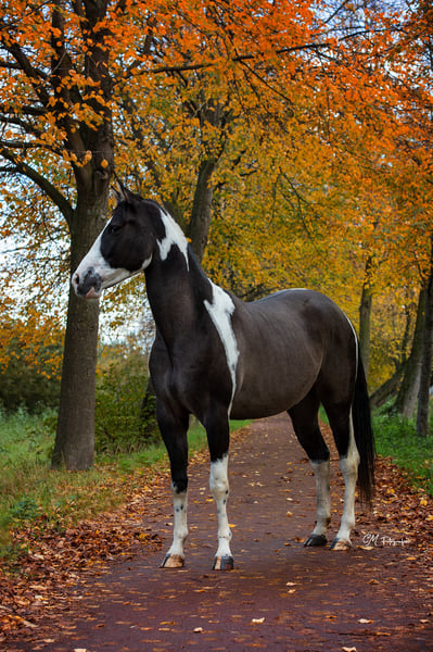 Chip ist ein schöner dreijähriger Paint Horse-Hengst mit einer Stockmaß von etwa 1,55 m. Er kennt das Reiten, wurde jedoch aufgrund von Zeitmangel nicht weiter ausgebildet. Er ist jedoch mit Bodenarbeit und Longieren vertraut. Chip ist von Natur aus sensibel und kann in neuen Situationen etwas ängstlich sein. Daher passt er am besten zu einem ruhigen, ausgeglichenen und geduldigen Reiter, der ihm Vertrauen schenken und konsequent mit ihm arbeiten kann. Mit der richtigen Begleitung wird er sich zu einem zuverlässigen Partner entwickeln. Beim Hufschmied ist er brav, und er wurde vollständig röntgenologisch untersucht. Derzeit besitzt er keine APHA-Papiere, diese können auf Wunsch beim Züchter nach ihren Bedingungen beantragt werden.