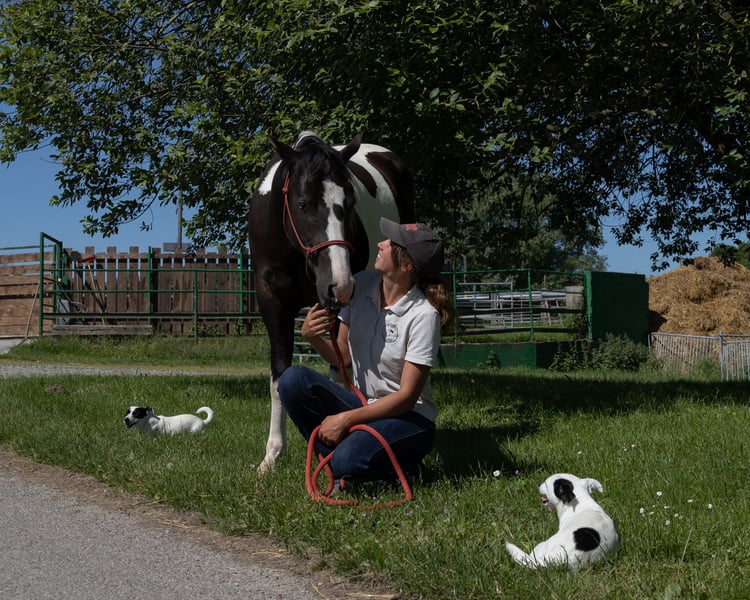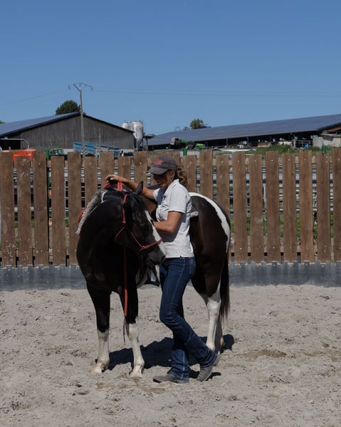À vendre : le poulain Paint Horse né en 2023, BUTTONS JIMBEAM (fils de DD CHAMPAGNE BUTTON x CHARMED WITCH JOSIE), surnommé « JOE ». Joe est à mes côtés depuis qu’il a un an, et je peux affirmer sans hésitation qu’il s’agit du poulain le plus détendu et amical que j’aie jamais rencontré. Il est arrivé par un détour chez moi, initialement prévu pour une courte période, mais j’ai finalement décidé de le garder jusqu’à ses trois ans afin de lui trouver un foyer adapté. Je ne le cède qu’en raison de mes ambitions personnelles, qui ne correspondent pas à ses qualités (et qui ne le feront probablement jamais), d’autant plus que j’ai déjà deux chevaux polyvalents, calmes et exceptionnels à la maison ! Quelques informations sur JOE : - il a toujours été en bonne santé - vermifugé et vacciné régulièrement - ses sabots sont régulièrement entretenus - il reçoit une alimentation minérale de qualité et des compléments - il connaît la vie en groupe (mixte) ainsi que le box avec paddock - il est très sociable, s’entend avec tous les chevaux et est très joueur - il connaît les sorties en main - il a l’habitude de se promener - il pratique le travail à la longe, en liberté dans le round pen, le travail avec des barres, la double longe - il connaît la selle - il supporte le poids du cavalier avec ou sans selle - je l’ai seulement monté sérieusement à trois reprises, il a principalement été monté, désensibilisé, manipulé, etc. - il est très doux avec les enfants - il connaît les chiens, chats, poules, vaches, moutons - il est parfaitement préparé pour une future carrière de cheval de selle - il a été habitué au travail de désensibilisation - il n’est absolument pas peureux et connaît diverses machines agricoles, tracteurs, souffleurs, camions, etc. - il a une très belle silhouette, est bien musclé, mais est encore en croissance - pas de certificat d’aptitude à l’utilisation (AKU) - il connaît le transport en van du box à la pâture, ainsi que le transport depuis l’ancien box - il possède des papiers APHA, un passeport équin et un certificat de transfert Je souhaite lui offrir un foyer idéal. Je ne peux pas prédire s’il sera adapté au sport, car il n’a aucune limitation, et avec suffisamment de temps pour son dressage, il pourrait devenir un cheval très talentueux. Je le vois comme un cheval pour le trail, le horsemanship, le plaisir ou le ranch, ainsi qu’un compagnon familial et de loisir. Il connaît parfaitement les vaches de notre ferme, mais ne montre aucun instinct de bovin ou intérêt particulier pour elles. Je souhaite pour lui une vie en troupe ou en box avec paddock (avec d’autres chevaux), car il adore jouer et s’ennuie rapidement autrement. C’est un cheval avec peu de « go » et plutôt du genre paresseux, mais il est toujours intéressé et participe avec enthousiasme au travail. Il adore les sorties en terrain, où il se montre très fiable. Plus d’informations par message privé ou WhatsApp au +49 163 7829 753. Sur les dernières photos, vous voyez Joe avec sa mère, CHARMED WITCH JOSIE, et sur une autre photo, son père, DD CHAMPAGNE BUTTON. Sur l’image où un autre Paint Horse, un hongre, se tient nez à nez avec Joe, vous pouvez voir son demi-frère, JACK, qui a également été en entraînement chez moi (et le sera à nouveau), et possède les mêmes qualités que mon JOE !