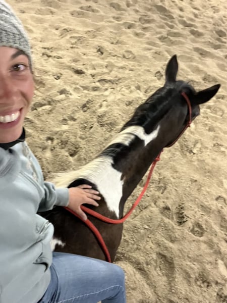 Zu verkaufen steht der 2023 geborene Paint Horse Wallach BUTTONS JIMBEAM (aus DD CHAMPAGNE BUTTON x CHARMED WITCH JOSIE) mit dem Spitznamen „JOE“. Joe ist seit er 1 Jahr alt ist in meinem Besitz, und ist ganz ernst gemeint das entspannteste und freundlichste Jungpferd welches ich bisher kennen lernen durfte. Joe kam unter Umwegen zu mir und war zu Beginn nur für vorübergehend geplant bei mir zu leben, später hab ich mich dann dazu entschlossen ihn bis er dreijährig ist zu behalten und für ihn dann ein passendes Zuhause zu finden. Ich gebe den hübschen Kerl nur aus den Händen, da er sich für meine persönlichen Ambitionen nicht eignet (eignen wird) und ich schon zwei super coole und gelassene Allroundpferdchen daheim habe! Ein paar Infos zu JOE: - er ist immer gesund gewesen - regelmäßig entwurmt & geimpft - regelmäßig Hufe bearbeitet - gutes Mineralfutter & Zusatzfutter bekommen - kennt Herdenhaltung (gemischt) sowie Boxenhaltung mit Auslauf - ist extrem sozial, kommt mit jedem Pferd aus und ist sehr verspielt - kennt Handpferdeausritte - kennt Spazieren gehen - kennt Bodenarbeit (frei im Roundpen, an der Longe, Stangenarbeit, Doppellonge) - kennt Sattel - kennt Reitergewicht mit und ohne Sattel - wurde von mir bisher erst 3x richtig frei geritten, ansonsten nur drauf gesessen, hoch und runter etc - ist total lieb mit Kindern - kennt Hunde, Katzen, Hühner, Kühe, Schafe - ist bestens vorbereitet auf eine Zukunft als Reitpferd - kennt Desensibilisierungsarbeit - ist absolut nicht schreckhaft und kennt allerlei Hofmaschinen, Traktoren, Laubbläser, LKWS etc - steht super da, gut bemuskelt, aktuell aber noch im Wachstum - keine AKU vorhanden - kennt Hängerfahren vom Stall zur Weide sowie Transport vom vorherigen Stall zu mir - hat APHA Papiere & Equidenpass & Transfer Report Ich wünsche mir für Joe ein absolutes Traumzuhause. Ob er sich für den Sport eignen wird kann ich nicht abschätzen, er hat keinerlei Einschränkungen und wenn man ihm genügend Zeit lässt in der Ausbildung wird er sich sicherlich zu einem sehr talentierten Pferdchen entwickeln. Ich sehe ihn in Richtung Trail, Horsemanship, Pleasure oder Ranch Horse sowie als Familien- und Freizeitpferdchen. Kühe kennt er in- und auswendig von unserem Hof, zeigt aber überhaupt keinen Cow-Sense oder weiteres Interesse. Ich wünsche mir für ihn Herdenhaltung oder aber Box mit Weide (zusammen mit anderen Pferden) da er wirklich super gerne spielt und sonst schnell gelangweilt wird. Er ist ein Pferd mit absolut wenig „Go“ und eher der faule Typ, er ist aber immer interessiert und 100% freudig dabei bei der Arbeit. Er liebt das Gelände und ist dort eine richtige Lebensversicherung. Mehr Infos gerne per pn oder per WhatsApp an +49 163 7829 753 Auf den letzten Fotos seht ihr Joe mit seiner Mama CHARMED WITCH JOSIE und auf einem anderen Foto seinen Papa DD CHAMPAGNE BUTTON. Auf dem Bild in welchem ein zweiter Paint Horse Wallach Nase an Nase mit Joe steht, seht ihr seinen Halbbruder JACK, welcher auch bei mir im Training war (und wieder kommt) und genau so gute Eigenschaften mitbringt wie mein JOE!