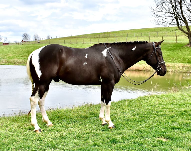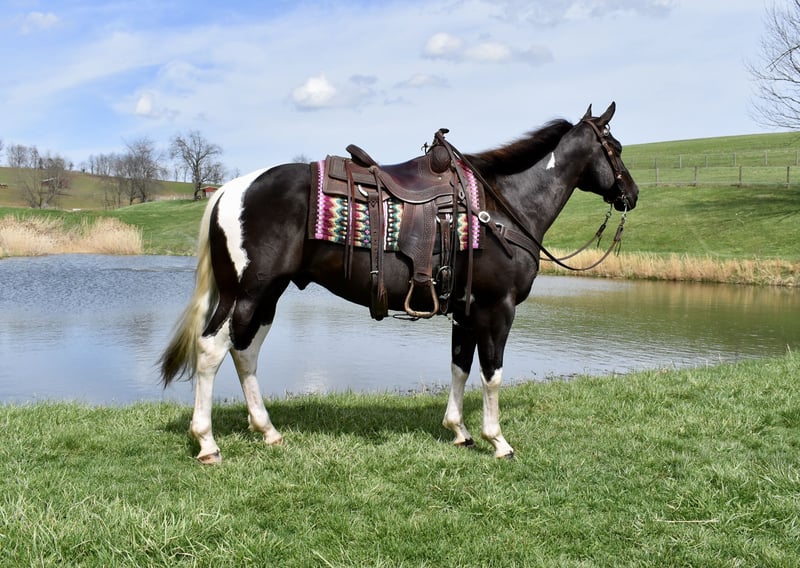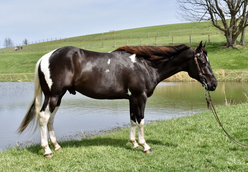 ⚜️𝐭𝐡𝐞 𝓔𝓵𝓲𝓽𝓮 𝐒𝐩𝐫𝐢𝐧𝐠 𝐂𝐥𝐚𝐬𝐬𝐢𝐜⚜️ Happening now thru MONDAY | APRIL 20th - Available EXCLUSIVELY on HorseBid's website! For more details and to register visit: www.Horsebid.com CONSIGNOR CONTACT: Twilight Farms / Kristin Mulhall 740-552-9538 LOCATION: Fresno, OH BREED: Paint REGISTERED: No REGISTERED NAME: Maverick COLOR: Black and White HEIGHT: 14.3 AGE: 5 GENDER: Gelding Maverick is a striking 5-year-old nearly black and white gelding standing just under 15 hands, offering the perfect blend of eye appeal, athleticism, and a solid foundation. He is the type that grabs your attention immediately with his sharp looks and confident presence, yet he remains sensible, willing, and enjoyable to have around every day. Under saddle, Maverick is well broke with a soft feel in the bridle and a responsive, willing attitude. He works comfortably off leg and rein, has smooth transitions, and carries himself naturally with a balanced and attractive headset—making him especially enjoyable for English riding. He is also comfortable and user-friendly, giving his rider a confident and enjoyable experience each time in the saddle. Maverick has even been ridden bridleless, demonstrating the level of training, trust, and connection he has with his rider. Maverick has not been limited to arena work—he has been brought along the right way with consistent exposure to real-life situations. He has been extensively trail ridden through the summer and fall, and throughout the winter he has stayed in steady work with arena rides and driving miles when weather allowed. He is very well started to drive and handles himself confidently both in harness and under saddle. Out on the road, Maverick is traffic safe and takes everyday activity in stride. Whether riding down the road or driving, he remains level-headed and confident, proving himself to be a practical and versatile horse that can step into a variety of programs. Adding even more value, Maverick is as fun as he is functional. He is trick trained and knows how to lay down and sit on a bean bag, making him a standout with personality and something the whole family can enjoy. Maverick is up to date on deworming, vaccinations, dental care, and farrier, and he has a current Coggins. He is a well-rounded gelding with the looks, training, and versatility that make him a standout in any program. Please Note: Photos showing Maverick as a faded brown were taken in February shortly after he was body clipped. His current conformation photos, taken April 2nd, accurately reflect his true dark coloring.