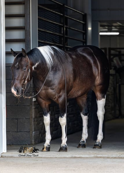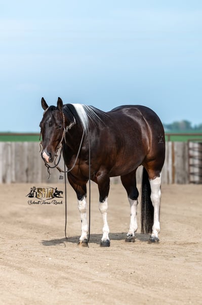 ⚜ The HERITAGE Classic ⚜ Happening now thru MONDAY | AUGUST 11th - Available EXCLUSIVELY on HorseBid's website! For more details and to register visit: www.Horsebid.com CONSIGNOR CONTACT: Schmitt Horse Ranch 507-459-8654 LOCATION: Holland, IA BREED: APHA REGISTERED: Yes REGISTERED NAME: Hashtag Blessed COLOR: Black Tobiano HEIGHT: 14.3 AGE: 5 GENDER: Gelding “Bandit” is a striking paint gelding that stands 14.3 hands tall and is built like a tank — thick, muscular, and correct. This unique gelding is by Hashtags out of a daughter of Thomas E Hughes! He is a finished cutter and has won $2,323 NCHA. 2024 APHA World Championship Show Jr Cutting Reserve Champion, marking a 220.5. Also marked a 217 in the 4-Year-Old Limited Open at the 2024 NCHA Super Stakes. Bandit is super gentle and a pleasure to be around. He stays trained, and is youth/amateur appropriate in the cutting pen. This is a super cool, one-of-a-kind individual that checks all the boxes - talent, looks, experience, and temperament. Bandit has also been ridden on the trails, been through our thorough desensitizing program, and has been roped on by the previous owners. This guy is versatile and can do about anything that’s asked. Bandit is super fun on the flag as well, and definitely doesn’t have to be tuned on daily to remember his job. He is smooth moving and has the softest rocking chair lope that you’ll ride. Bandit has a fancy handle with all the bells and whistles. Hauls, loads, stands tied, bathes, and stands great for the farrier. Great in a stall or outside, super easy going and gets along with other horses. I believe about anyone who can climb up in the saddle should be able to get along with this guy. With his sweet, charming personality, quick and catty moves on a cow, smooth rocking chair lope, and jaw-dropping good looks — Bandit is the kind of horse you can’t help but fall in love with! Current on deworming, farrier, vaccinations, basic pre-purchase exam, and coggins. For more information give us a call 507-459-8654. Bandit is located in Holland, Iowa. We welcome test rides prior to the auction ending as well and free board within a reasonable time frame after purchase until shipping arrangements can be made.