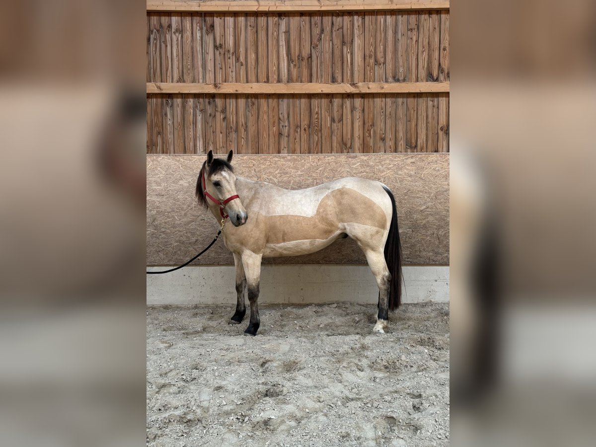Zum Verkauf steht unser wunderschöner American Paint Horse Spirit, 4 Jahre alt, mit einem Stockmaß von ca. 1,55 m und in der seltenen Farbe Buckskin.