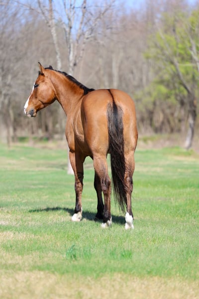 ⚜️𝐭𝐡𝐞 𝓔𝓵𝓲𝓽𝓮 𝐒𝐩𝐫𝐢𝐧𝐠 𝐂𝐥𝐚𝐬𝐬𝐢𝐜⚜️ Happening now thru MONDAY | APRIL 20th - Available EXCLUSIVELY on HorseBid's website! For more details and to register visit: www.Horsebid.com CONSIGNOR CONTACT: Triple M Ranch 469-318-1902 LOCATION: Talty, TX BREED: APHA REGISTERED: Yes REGISTERED NAME: CHICS DIG THE NITE COLOR: Dun HEIGHT: 15.2 AGE: 5 GENDER: Gelding ✈️ Top Gun is a 5 yr old 15.2 hands tall Registered Line Back Dunn Gelding!! This well bred gelding has some of the greats on his papers. Including Colonels Smokingun, Hollywoodstinseltown, High Brow Cat, BH Top Gun. He is bred to be an outstanding horse. He is at the prime age a ready to go on and do big things. He has an excellent foundation in his training. He has all the bells and whistles. He has been very well started and lightly shown the ranch versatility classes, the ranch and the trail courses. He is extremely honest and willing to please. He is naturally quiet and easy going. From his jog to his little silky lope. He packs his head low and level without any fuss or resistance. ✈️ He is also amazing out on the trails and riding through town! He is not at all spooky or bothered by things like wildlife or common things one might see on a trail ride or in town. Like traffic, bikes, motorcycles, lots of people. He quiet riding anywhere in the pack and he stands tied at the trailer for tacking and untacking like a perfect gentleman. Absolutely no bad habits whatsoever!! You do not have to warm him up or tune him up to go for a ride. He is easy and fun to ride. ✈️ No matter which direction you decide to take this handsome boy he is ready and willing. At just 5 yrs old he has his whole life ahead of him. I would say he is suitable for any level and any age rider. From beginners all the way up to an advanced rider. This gelding has been nothing short of amazing for us. Plus the best part is he has the most amazing, in your pocket personality with an "old soul" disposition! He loves people and attention. Loves kisses and muzzle scratches. He will lay his head on your chest and just close his eyes getting loved on! If ever there was a young horse suited for a novice to ride and show.. this would be him! ✈️ He is a super easy keeper. Requires no maintenance of any kind. He can go bare foot or put shoes on him. You can stall him or turn him out. Doesn’t matter to him. He is easy. PLUS he sells 100% sounds with no issues. He did have a pre vet evaluation done included in the pictures. If you have anymore questions about him feel free to call. We would love to visit with you about him. We can help you arrange shipping anywhere. He is up to date on all vaccinations, worming, feet. He is ready to go to his new home.