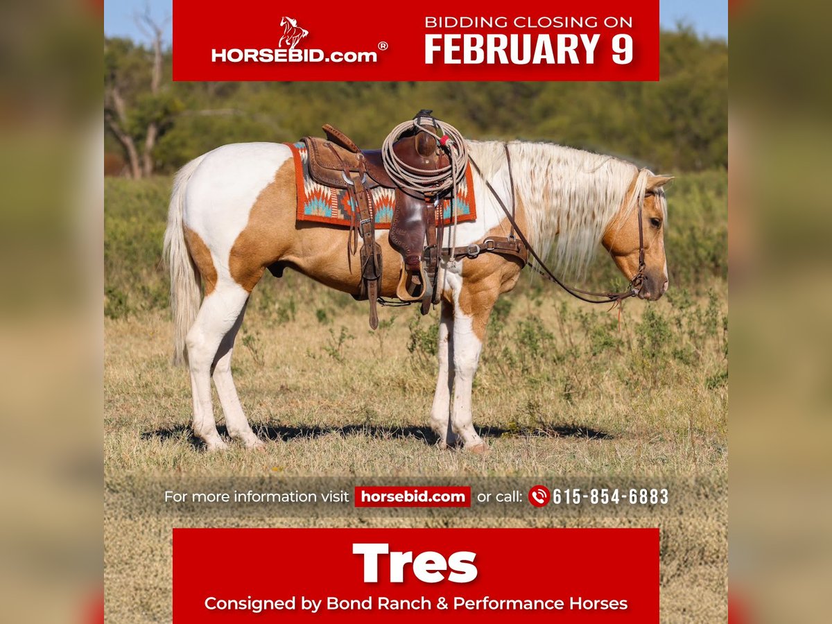❤️🔥𝑩𝒆 𝑴𝒊𝒏𝒆 𝐒𝐄𝐋𝐄𝐂𝐓❤️🔥 Happening now thru MONDAY | FEBRUARY 9th - Available EXCLUSIVELY on HorseBid's website! For more details and to register visit: www.Horsebid.com CONSIGNOR CONTACT: Bond Ranch & Performance Horses 615-854-6883 LOCATION: Ranger, TX BREED: American Paint Horse REGISTERED: Yes REGISTERED NAME: Dans Cracker Jack COLOR: Palomino Paint HEIGHT: 14.2 AGE: 6 GENDER: Gelding If you’re looking for one that’ll make you grin every time you saddle up, meet Tres! A 6 year old APHA gelding sired by Freckled Bobcat, out of Cowgirls Sunshine Bar. He’s the kind of gelding everyone in the family can enjoy — broke, kind, and steady as the day is long. The definition of versatility: a true ranch partner, an up-and-coming heel horse, and the kind of steady soul you can trust with your best day or your greenest rider. Standing 14.2 hands, Tres is built right — compact, athletic, and pretty as a desert sunrise. He’s earned his keep doing the kind of work that makes a horse solid from the inside out: long days gathering rough country, sorting pairs, dragging calves to the fire, and doctoring yearlings. There’s no job too big or small for this young gelding — the kind of resume that’d make most horses blush. When it comes to the arena, Tres has talent to burn. He’s a natural on the heel side — quiet in the box, smooth across the pen, and deep in the stop. He reads cattle with confidence, rates naturally, and carries the perfect mix of cow sense and composure to go far. Handy enough for ranch horse classes, fancy enough for versatility, and quiet enough for the whole family. Always gentle and forgiving, Tres meets every rider right where they are — whether you’re a seasoned cowboy or just getting started. Ride him bareback, bridleless, or double; Tres handles everything with quiet confidence and a big heart. He’s been used for mounted shooting, carried flags, and seen more of the great outdoors than most people. Sure-footed, confident, and careful in steep, rough country — the kind of trail partner you can trust when the going gets tough. From mountain trails to the show pen, this gelding does it all with style and try. Honest, handy, and downright handsome! Tres will make you proud to call him yours! Tres has clean X-Rays on file and is up-to-date on deworming, farrier and dental work. For additional information, questions or to schedule a time to meet Tres please call or text Morgan at 615-854-6883.