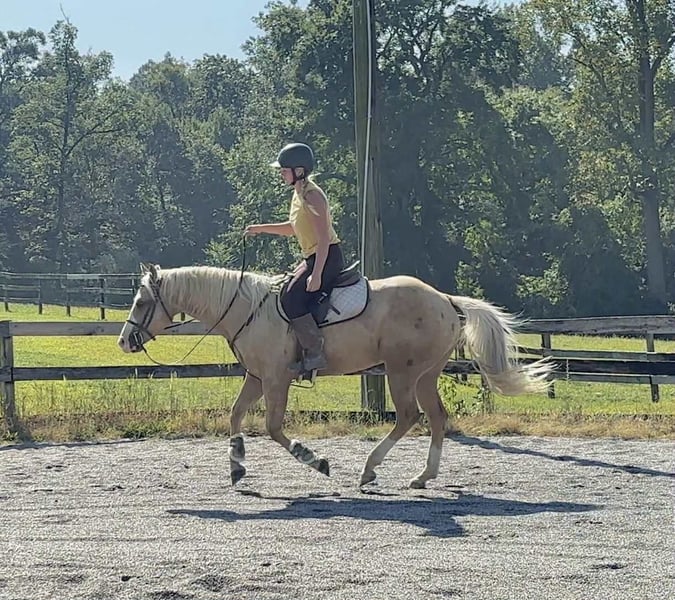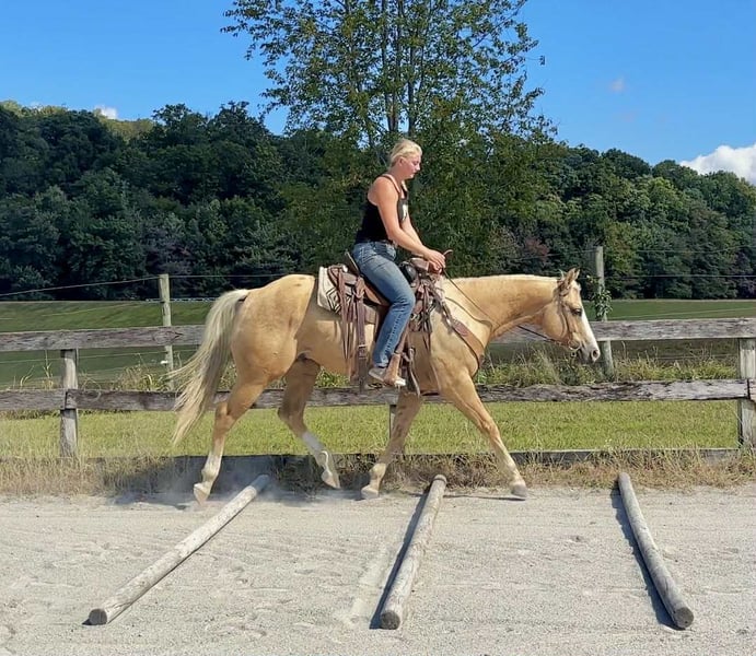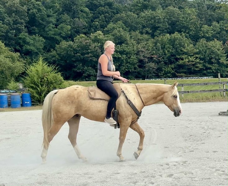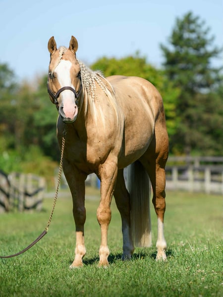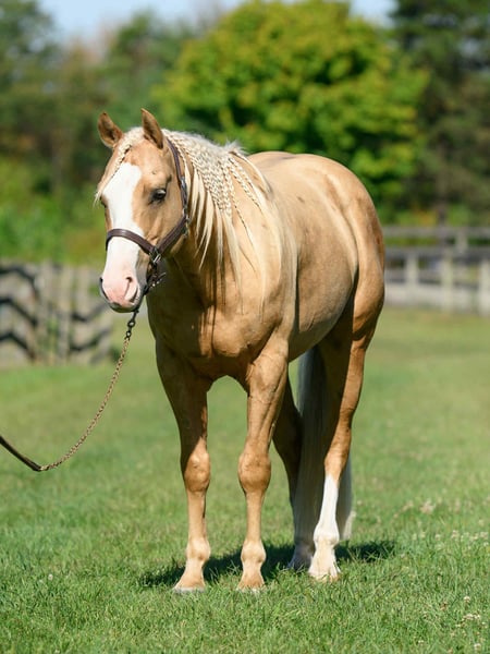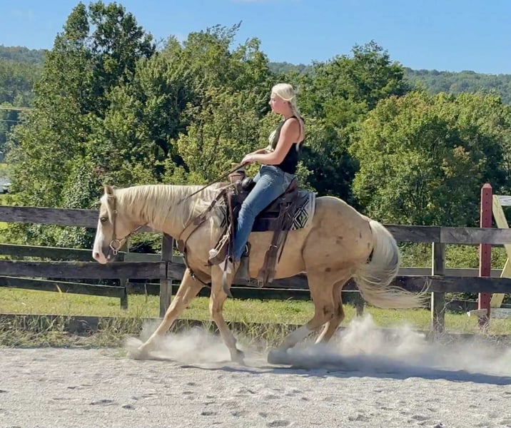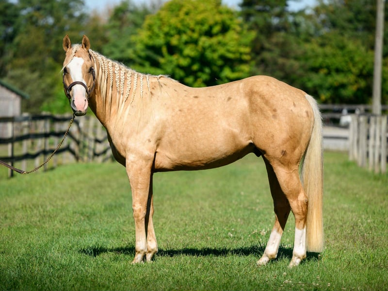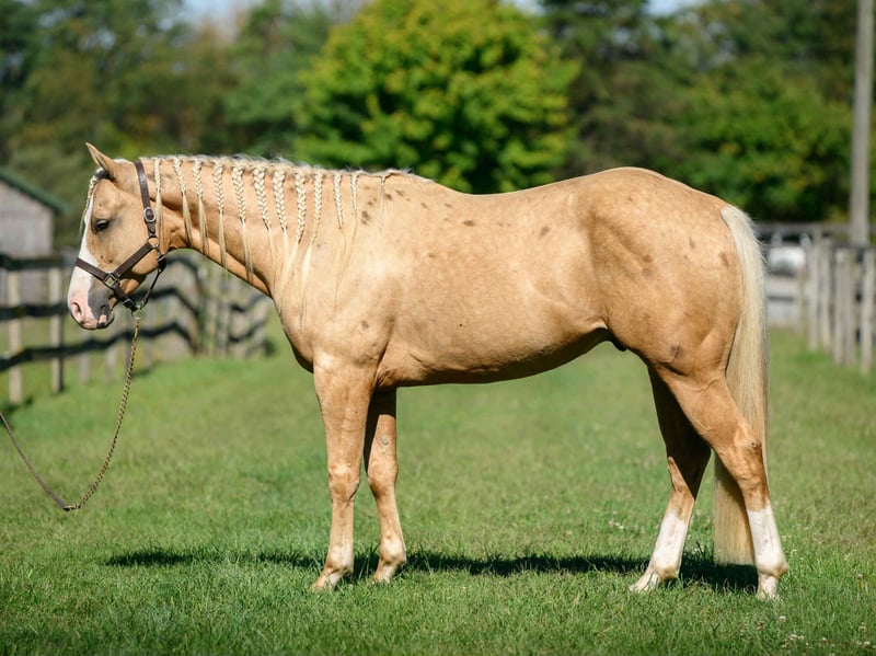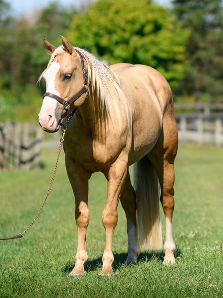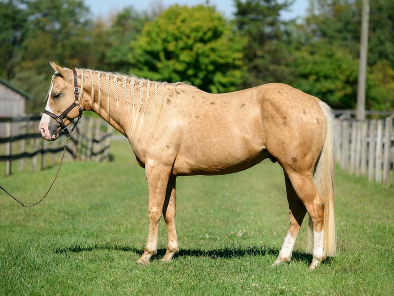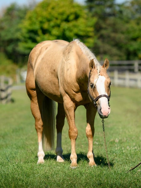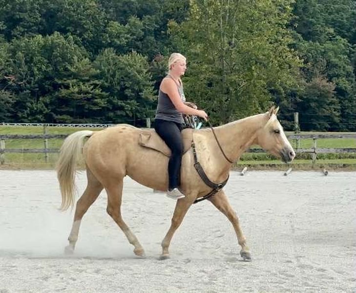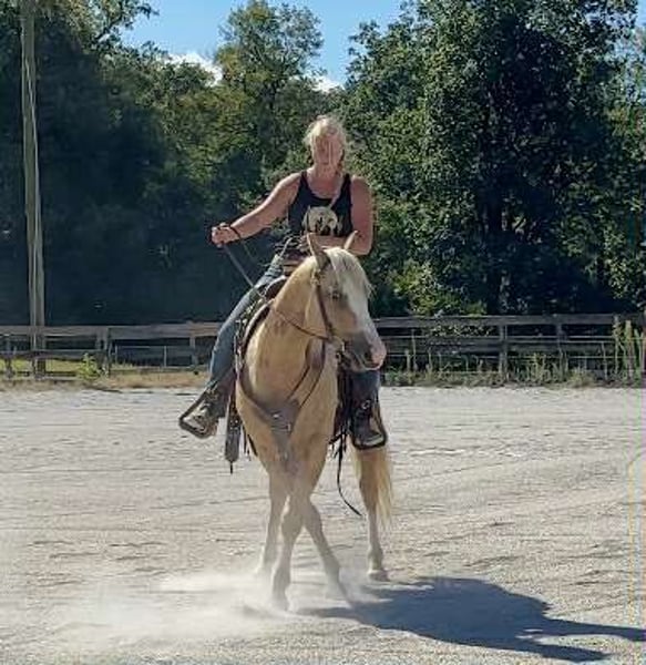 "AVAILABLE ON ONLINE HORSE AUCTION AT www DOT MagicHorseAuction DOT com BIDDING OPEN NOW thru TUESDAY | October 14TH! - BUY IT NOW AVAILABLE! *Final price will be determined on auction site* CONSIGNOR CONTACT INFO: Roni Renee Turner 610-806-2613 LOCATION: Narvon, PA "“Freckled Intoxication” aka “Malibu” is a 5yr old, 15hh, APHA gelding, with a lush mane, beautiful palomino coat, and chocolate freckles all over his body. Mali is safe, reliable, and Mr. Personality! He is an in your pocket type of dude with loads of character. Malibu can do it all, and he is ready to be your best friend! Do it all, and do it safely! In the barn, he has zero bad habits. He can live in or out, goes out with others and can live alone. He has no bad stall habits and is quiet while stalled. He stands on the cross ties to be groomed, tacked, bathed, etc. He straight ties to the trailer to get ready. Mali is a happy go lucky guy, and loves attention. He is safe with kids and dogs running around him, cows standing with him, you name it. He is totally unbothered and knows how to take a joke! He is an easy keeper with a simple diet, no maintenance and no supplements. He is good for the vet and farrier, and can wear shoes or go barefoot. He walks up to you in the pasture and is easy to catch. He likes being around people and will make you giggle with his silly personality. Malibu loves trail riding. He will lead, follow, go alone and in groups. He has a nice steady walk pace, and will trail ride on the buckle all day long. He is safe with traffic, bikes, strollers, wildlife and doesn’t mind my dogs trailing his heels. He crosses logs, rocks, water, and will wait for you at the porta potty. He would make a great camping partner or fox hunter. He even has the personality of a husband horse. He is always up for a good adventure, pack your saddle bags full of beer and go enjoy your ride. Malibu rides western, english, and bareback. He is soft in your hands and rides in a simple snaffle, or even a halter and lead rope! His gaits are comfortable and uphill. He has smooth transitions and listens nicely to your cues. He is a blast to ride, and the same horse every ride. Mali is the safe horse that your kids can go jump on in the pasture and he will take care of them. In the ring, Mali will walk, trot, canter, knows his leads, and loves to jump. He will ride collected or on the buckle. Malibu backs up nicely, pivots, side passes, neck reins, moves off of your leg, and you can ask for a big whoa, or bring him down smoothly through the gaits. He shows a lot of potential for ranch classes, low level reining fun stuff, cows, western dressage and more. He trots nicely through ground poles and is careful of where he puts his feet. He will ride off of your seat, or voice commands. Mali is forgiving and doesn’t get upset if his rider is off balance. He is just always a happy guy and enjoys every ride. Malibu enjoys jumping too! He will pop over tiny cross rails gently, or jump larger jumps and cross country fences too! He is a natural over fences and is very good with distances. He does not get hot or forward while jumping. You’ll see how honest he is in the clips of my pup jumping the cross country jumps with us. Malibu is a beautiful mover, and could go dabble in low level dressage, eventing, or maybe you just want a horse that will take care of you while you work on yourself! No matter what direction you want to take him in, he is happy to do it, or go have fun and do IT ALL!!!!! Malibu is registered with APHA. He is sired by “Intoxication” who is a beautiful stallion who has points in halter and western pleasure, who goes back to “Mighty Awesome”, a stallion who was known for his championship breeding and impact on APHA. On Mali’s bottom side, back in his lines you will see “Sonny Dee Bar”, a famous stallion who is a leading sire of show horses, known for producing great dispositions and natural talent. He was inducted into the AQHA Hall Of Fame in 2003. Malibu’s breeding speaks for itself, and has created an amazing all around boy. No matter what you are looking to do, Malibu is ready to be your forever partner and do it with you. I have really enjoyed my time with this boy. He is currently set up to head in absolutely any direction. Not to mention, he is easy on the eyes! If Malibu sounds like a good match for you, please don’t hesitate to reach out for further information!!! Shipping can be arranged anywhere.