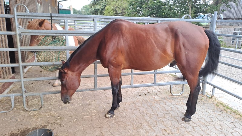 Je vends mon hongre Paint Horse de 7 ans. Il a été monté, mais n'a pas été davantage entraîné ici pour des raisons personnelles. Il connaît le travail en longe, les longues rênes, le travail au sol, le désensibilisation, etc., et travaille bien dans ces domaines. Il n'est pas adapté aux débutants et aux enfants ! Il a besoin d'une personne expérimentée, sûre d'elle et cohérente, alors il est un cheval bien dressé. Ce n'est pas une vente urgente, il sera cédé uniquement si tout est en ordre. Düno est actuellement en train d'être intégré dans un troupeau mixte en stabulation libre. Son équipement est également inclus dans le prix. Pour un intérêt sérieux, n'hésitez pas à envoyer un message WhatsApp ou à appeler entre 15h et 17h.