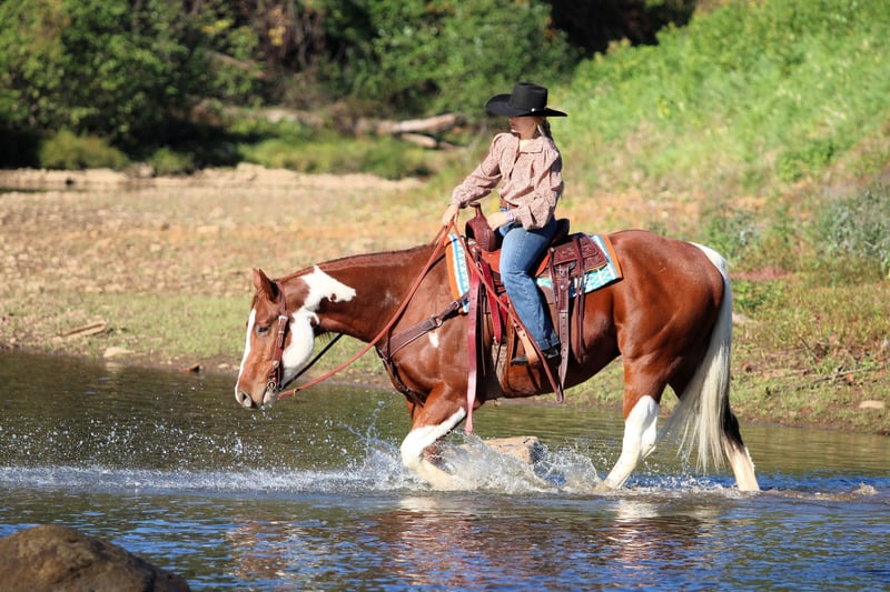 ♦️ 𝐭𝐡𝐞 𝐀𝐌𝐄𝐑𝐈𝐂𝐀𝐍 𝓕𝓪𝓵𝓵 𝓒𝓵𝓪𝓼𝓼𝓲𝓬 ♦️ Happening now thru MONDAY | OCTOBER 20th - Available EXCLUSIVELY on HorseBid's website! For more details and to register visit: www.Horsebid.com CONSIGNOR CONTACT: LT Equine 724-664-5327 LOCATION: Miola PA BREED: APHA REGISTERED: Yes REGISTERED NAME: Sweet Cheesus COLOR: Chestnut and white paint HEIGHT: 15.3 AGE: 7 GENDER: Gelding Introducing “Sweet Cheesus” yes, that’s his real name! We call him The Big Cheese or just Cheese! 🧀 Not only does he have the coolest name he’s the coolest horse to boot! He has the most unique markings around! If your wanting a horse that’s catches everyone’s attention he’s your guy! He’s a big thick built horse with solid legs and feet to last. Standing approximately 15.3+, he has a very defined head and jaw that makes his looked even more attractive. Cheese is very well bred going back to the famous INVITATION ONLY ( an all time leading sire of point earners, 2008 NSBA Halp of fame Indcutee, amongst many other accomplishments) Cheese has that natural western pleasure breeding quietness and level headed when riding. Though he’s not a finished western pleasure horse he would go into a show ring and do well he’s the type of horse that is cool with whatever you throw at him. I just use Cheese as a trail horse, I guide large groups of riders on trail rides all over the forest. He’s fantastic in large groups, lead or follow, or out alone. He’s not spooky, and has a very good mind. Cheese neck reins, has a nice deep stop, easy smooth trot, slow lope picking up both leads, he’ll side pass and backs up nicely. Cheese would also make a nice English horse as well or a lesson program horse. He is super safe. He’ll go down through water and mud holes, up over mountains and rough terrain. He’s been packed down with saddle bags, and tied to trees for lunch. He stands nice to mount and dismount with or without the mounting block. You will not be disappointed with The Big Cheese! For any more information please contact me call or text! Thank you! Have a great day.