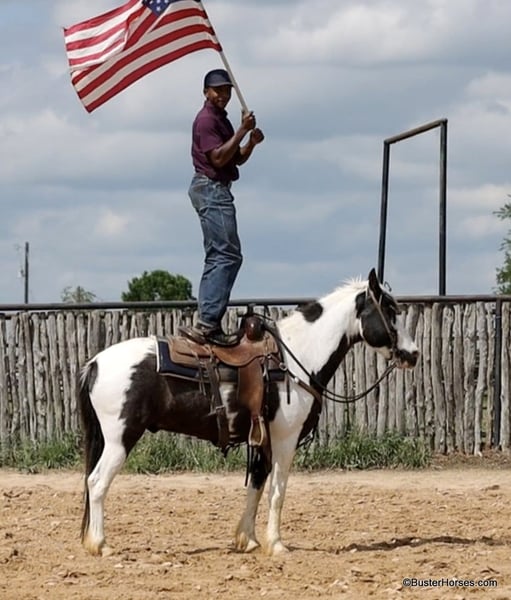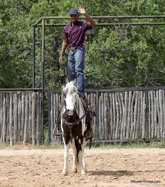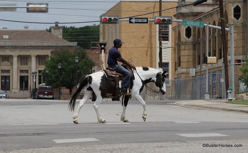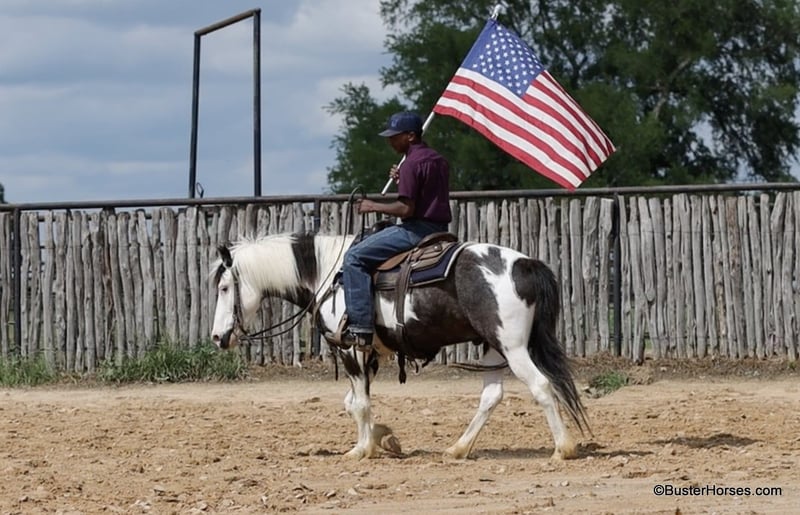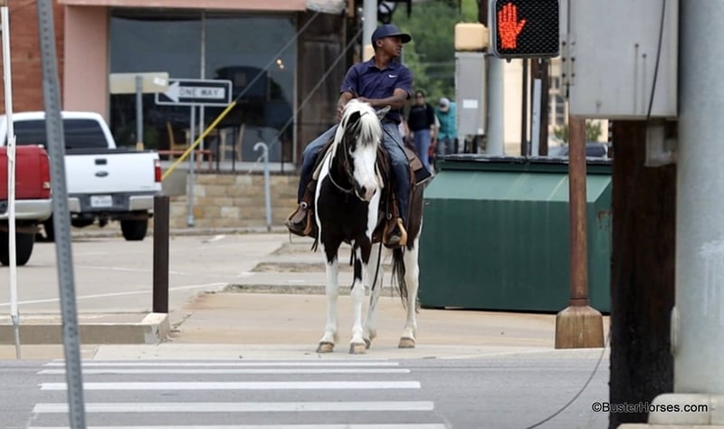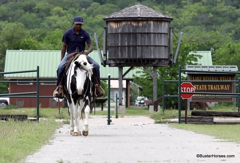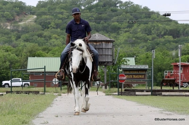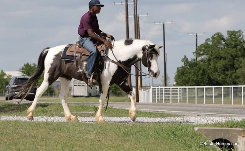 ONLINE AUCTION Place your bids at www.PlatinumEquineAuction.com Starting Bid $3500 Auction ends May 25th, 2025 Need a new saddle? Check out White Rock Saddles on our website or Facebook! If you are looking for a flashy, fun, no-nonsense, sweet, just point-and-go have a good time trail riding companion… then Tonto is your man!!! He is at the perfect age at only 7 years old, he has already been around and seen lots of things, been hauled, been on lots of rides, been in lots of parades … but he is only 7 and still has his whole lifetime in front of him! This sweet little gelding is great-natured, kind, and so extremely simple and uncomplicated to ride. He is as smooth as they come and suitable for just about any level of rider. If you are sitting on him, you feel extremely secure. He is so naturally smooth moving in all of his gaits, that you would have to practically just pick up and bail off of the side of him to be able to come off of this one!!! He is naturally low-headed and will travel on a relaxed rein and neck rein around – but, you can also pick him up and ride with a lot of contact, and he will tolerate just about anything with new rider’s bumbling around being all over on him, in his face, and in his mouth. He has an adorable personality and loves to be around people. He drops his head for the halter or the bridle to be put on, and will stand there relaxed and patient if you have to fumble around and get organized. He could care less about other horses and never knickers or calls back to the barn, super good about leaving the barn and going out alone. He hauls like a perfect gentleman. If you often ride out alone, then this is the one for you. He is great anywhere in the group and has a huge big ground covering almost running walk to him if you push him and ask for it. He is a unique cross that could ride with the regular horses and also keep up with the gaited horses! He loves the water and does not hesitate to cross the creek or go into the pond, he is sure-footed and handles up and down terrain, creek beds, banks, Rocky areas, and thick wooded trees. He pays attention and navigates where he is going. He is great to catch, bridle, saddle, groom, bathe quiet for the vet and the farrier, and just an all-around gentleman! Everybody here adores this sweet horse, he will be with his next partner for a long time! Please do not hesitate to give us a call if you have any questions about him! Ashely at Buster Horses 214-605-7174 Tonto is shod all the way around and is ready to hit any trails that you put in front of him, his feet were just reset last week. Prior to being shod, he was barefoot for quite a while, he has really great feet, and could easily go barefoot again if you were just riding around your place locally. His teeth were just done by our equine dentist last month, and he also had his sheath cleaned, his ears preemptively treated for ticks, and was dewormed at that time. He will arrive to his new owner up to date on everything and ready to go. He is in great shape and in good health. Watch his video, and to see additional videos, go to our website: BusterHorses.com or our Facebook page: Buster Horses Tonto is located in Weatherford, TX – one hour from Dallas / Fort Worth International Airport. He is an easy day trip, or fun overnight trip to come and try out, from anywhere! We are experienced, knowledgeable sellers, and we can help with quickly arranging affordable shipping to any buyer’s location – we have experience shipping worldwide – including regularly to Hawaii, Canada, Mexico, Europe, and South Africa. Check our website for buyer reviews, more videos of Tonto, additional info, etc: BusterHorses.com/Tonto-Paint-Gelding ONLINE AUCTION Place your bids at www.PlatinumEquineAuction.com Starting Bid $3500 Auction ends May 25th, 2025 Need a new saddle? Check out White Rock Saddles on our website or Facebook!