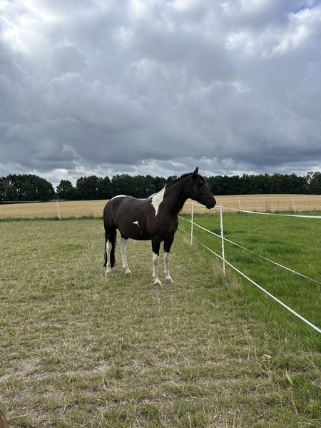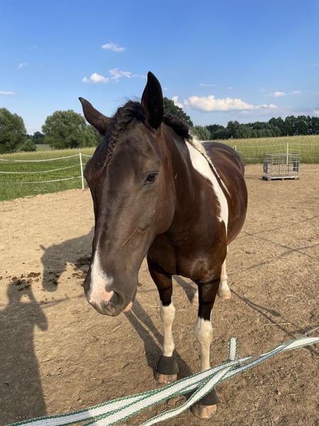 With a heavy heart, I am selling my 8-year-old Paint Horse gelding, Docs Indian Dakota (approximately 15.6 hh), by BMS Docs Indian Hunter, due to health reasons. He is truly a horse from the heart, an honest and reliable companion for leisure riding who will do anything for his owner. Very affectionate, friendly in handling, and always eager to please his rider. A horse you simply feel comfortable with ❤️ Whether for trail riding, groundwork, or relaxed time in the stable, he handles everything calmly and remains friendly and composed. Perfect for leisure riders seeking a loyal partner for life. Age: 8 years Gender: Gelding Breed: Paint Horse Height: approx. 15.6 hh Temperament: honest, gentle, reliable, people-oriented Use: leisure, all-rounder Accessories can be included at an additional cost (Euroriding Diamant dressage saddle, Passier Blue bridle, Bucas blankets, etc.). Only to caring and responsible hands. Not a distressed sale. I am looking for a 5-star home where he will lack for nothing.