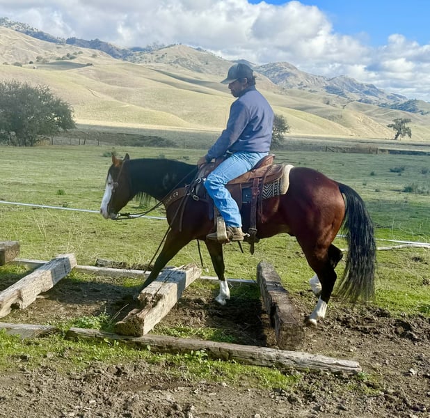 ONLINE AUCTION Place your bids at www.PlatinumEquineAuction.com Starting Bid $3500 Auction ends December 7th, 2025 Need a new saddle? Check out White Rock Saddles on our website or Facebook A CLASSY DERRINGER — SMALL PACKAGE, BIG TALENT, ZERO NONSENSE… Derringer is the little horse that rides like he’s auditioning for the head trainer position, not the warm-up pen. He’s 8 years of experience standing At 13.2 hands, he’s the perfect height for those of us who are done rock-climbing into the saddle, but still expect a horse that is correct, broke, seasoned, and truly useful. He is not a “make-do” size — he is the full-performance model, conveniently closer to the ground. I rarely, if ever, use the word bombproof — but after everything I’ve thrown at him, everything he has seen, everything he has stepped over, under, and through, I can confidently say he is as close to bombproof and unflappable as you’ll ever meet. He is, without hesitation, the most calm, steady-brained, and unrattled horse I’ve ever handled. He is suitable for both adults and kids, and if you want your child to have the best shot at becoming a real, confident, capable rider, this is the horse that will actually teach, not terrify. Good horses make good riders — Derringer builds them. He has the looks that stop conversations: deep bay, a wide bald face, two eyeliner-perfect blue eyes, and high white socks that say “yes, take another picture, I know.” He’s show-quality, video-approved, and impossible to duplicate. He isn’t just pretty — he is distinct, memorable, and rare. Derringer rides like a little reiner with a day-job — soft in the face, travels collected, moves off leg with ease, has a true stop and a clean turnaround, and lopes beautiful, pretty, correct circles in the arena like he’s been practicing for judges who won’t blink. He has been used for real ranch work — gathering, sorting, doctoring, and branding — and he has also been started heeling. He’s naturally cowy, positions himself right, and has a good, honest stop ready for someone to continue him in the roping if desired. Outside the arena, he handles everything from rocks, hills, mud and brush to water, bridges, flags, tarps, pool noodles, and wildlife — yes, even the kind that jumps out and makes seasoned horses invent new dance moves. Derringer just blinks, sighs, and keeps traveling like someone promised him hay at the end of the trail. And because you asked — yes, you can crawl on him, stand on him, hang off him, drag from him, climb around him, and he genuinely could not care less. He’s more patient than a ranch wife waiting in the truck while someone says “one more” at the branding pen. He is just as polite to live with as he is to ride: ties, clips, loads, bathes, stands for the farrier, hauls quiet, settles in new places, stalls or pastures with no drama, and stays easy on feed. Vet and farrier care is up-to-date. They don’t build them like this often. Derringer is the definition of what everyone looks for, yet almost no one gets the chance to own. He is truly unique, genuinely beautiful, and unquestionably one-of-a-kind. You can look at fifty horses or five hundred — you won’t match him.Come see him for yourself and you will fall in love just like we all have with this special boy. He is one that is hard for us to let go of. Location: Paicines, California Owner: Dina -Longhorn Ranch Phone: 831-537-1915 Shipping: Nationwide, professional haulers available Vet & Farrier: Current, correct, and consistently maintained ONLINE AUCTION Place your bids at www.PlatinumEquineAuction.com Starting Bid $3500 Auction ends December 7th, 2025 Need a new saddle? Check out White Rock Saddles on our website or Facebook