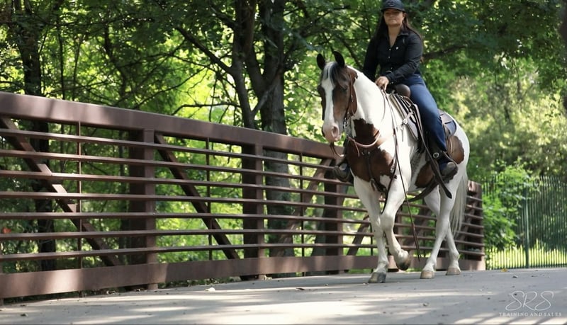 ONLINE AUCTION Place your bids at www.PlatinumEquineAuction.com Starting Bid $3500 Auction ends August 4th, 2024 Need a new saddle? Check out White Rock Saddles on our website or Facebook! EKPD Sand Peppy Doc aka “Scout” is a 2017 Registered Paint gelding standing at 15 hands. Scout is a a kind and gentle gelding who is willing to go all day long. He has lots of energy and makes a great using horse. Scout is willing to go through any obstacle you put in his way whether it’s flags, banners, tarps, water, lawn sprinklers and fountains, he is always ready to do what you ask when you ask it. I have used Scout to gather cattle, check fences, pony colts, trail ride, and he has always been a great companion. He rides in an arena and outside whether it’s by himself or in a group. I often take him out to check fences bareback in a hackamore and him and I both have the best time! He walk, trot and lopes both leads very easily off your leg cues. He mostly neck reins but will also listen to direct rein. Scout listens phenomenally to leg cues, he will turn around both directions and side pass left and right with ease making opening and closing gates off him a breeze. Scout is ready to be a using horse or could be finished to be one of the prettiest in the arena for gymkhanas, ranch rodeo, and ropings. He has an adorable gelding personality with excellent ground manners. He ties nicely in the barn or at the trailer to be groomed, saddled, and bathed. He hops on the trailer with ease and backs off very nicely. Scout can be outside in a pasture alone or with other horses, he also does well in a stall. He has recently been seen by my vet, farrier, dentist and chiropractor and was an excellent citizen for them all. Scout is an excellent horse that is always ready to work and be pointed in the next direction by his rider. For more information or questions please contact Sydney with SRS Training and Sales at (518) 935-8282. Scout is located in Granbury, TX. If you love Scout and are not local I am happy to help arrange shipping options that are quick and affordable all across the U.S. ONLINE AUCTION Place your bids at www.PlatinumEquineAuction.com Starting Bid $3500 Auction ends August 4th, 2024 Need a new saddle? Check out White Rock Saddles on our website or Facebook!