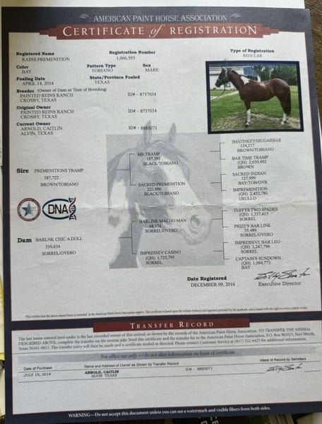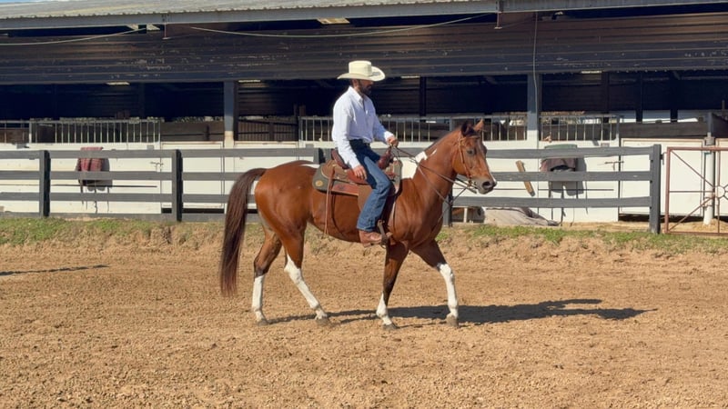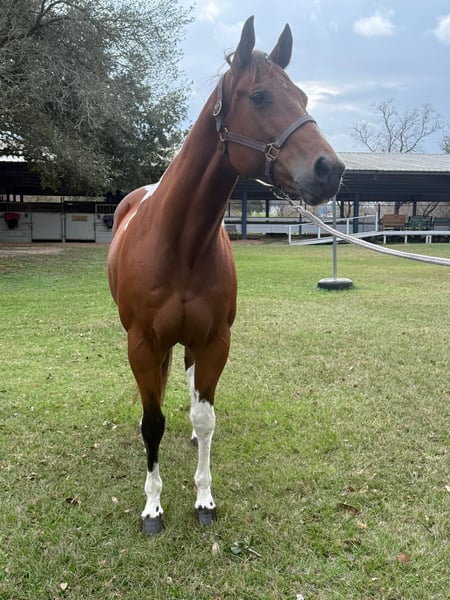 "AVAILABLE ON ONLINE HORSE AUCTION AT www DOT PlatinumEquineAuction DOT com BIDDING OPEN NOW thru SUNDAY | APRIL 5TH! *Final price will be determined on auction site* CONSIGNOR CONTACT INFO: Cathy Strobel 832-282-7000 LOCATION: Fresno, TX Rains Premenition aka Carrera is an athletic, flashy paint mare that has a great motor and will give you whatever speed you’re looking for. She was ridden Western on the trails before her arrival with us and English ever since, and has jumped everything from small crossrails to 2’6. Stands well for the farrier, bathes, ties, picks up all four feet, blankets, easy to catch, and has good ground manners. She is stalled at night, goes out in a herd of mares during the day, and generally gets along well with others. She listens well but needs a rider with confidence and a soft hand, and will do what you ask so long as you’re sure when you ask. UTD on shots, deworming, Coggins, teeth, and only wears front shoes. Well bred out of the Sacred Indian line. For more information contact Cathy Strobel 832-282-7000