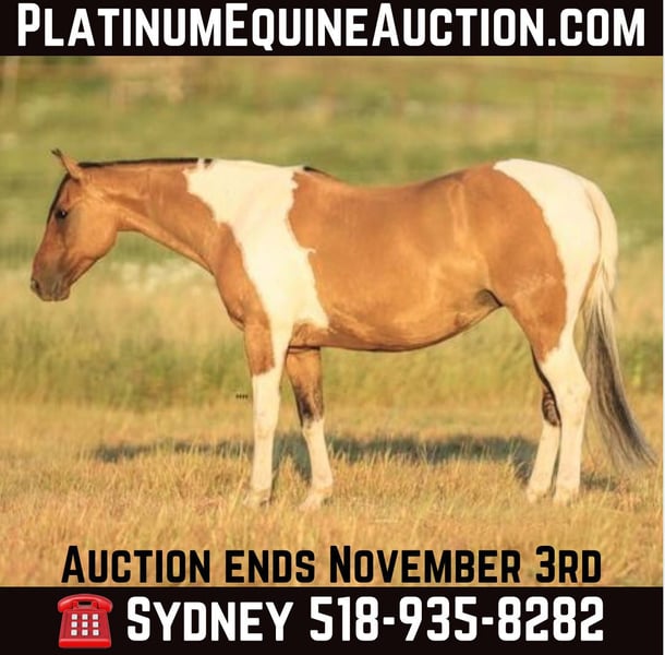 ONLINE AUCTION Place your bids at www.PlatinumEquineAuction.com Starting Bid $3500 Auction ends November 3rd, 2024 Need a new saddle? Check out White Rock Saddles on our website or Facebook! Dutchess or “Peggys Gone N Dun It” is a 2014 model Dun Registered Paint Mare. Standing at 15H this mare is strong and stout. Dutchess got her name from her almost regal presence. She has a dignified, reserved personality and remains unbothered by her surroundings. She has proven to me time and time again that she is consistent and does all things in a disciplined, distinguished manner. Her personality isn’t the only thing to brag about though. She has a big kind eye that shows how kind and honest she is. She has nice legs and confirmation suitable for many disciplines. Her color is something extraordinary as well as a Dun Paint she has some striping on her legs and a very prominent dorsal stripe on her back. Dutchess also rides wonderfully. She will walk, trot, lope on a loose rein. She has a very nice stop and has slow correct spins in both directions. She is very soft in your hands and moves off your leg nicely. She will neck rein nicely or you can ride two handed if you prefer. You can move any part of her with your legs and she side passes from a woah, walk, and trot. Dutchess is not spooky and will go almost anywhere you tell her. She rides nicely on trails, the arena, or even traffic. She loads and unloads from the trailer very nicely without any hesitation. She stands nicely at the barn or the trailer to be groomed, saddled, and bathed. Dutchess does very well by herself or in a group and does not act marish around other mares or geldings. Dutchess has recently been seen by my dentist, farrier, and chiropractor and was an excellent citizen for all. She is what I call a “yes ma’am” type of horse. I ask for something and there doesn’t have to be a conversation about it she just says “yes ma’am”! She has been an amazing horse to have in my barn and a true joy to be around. For more questions or information please contact Sydney with SRS Training and Sales at (518) 935-8282. Dutchess is located in Granbury, TX and I’m happy to help arrange shipping anywhere in the US . ONLINE AUCTION Place your bids at www.PlatinumEquineAuction.com Starting Bid $3500 Auction ends November 3rd, 2024 Need a new saddle? Check out White Rock Saddles on our website or Facebook!