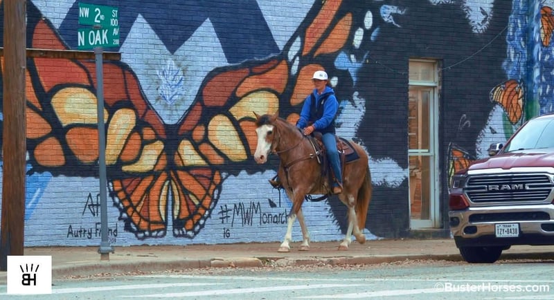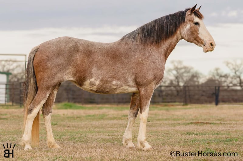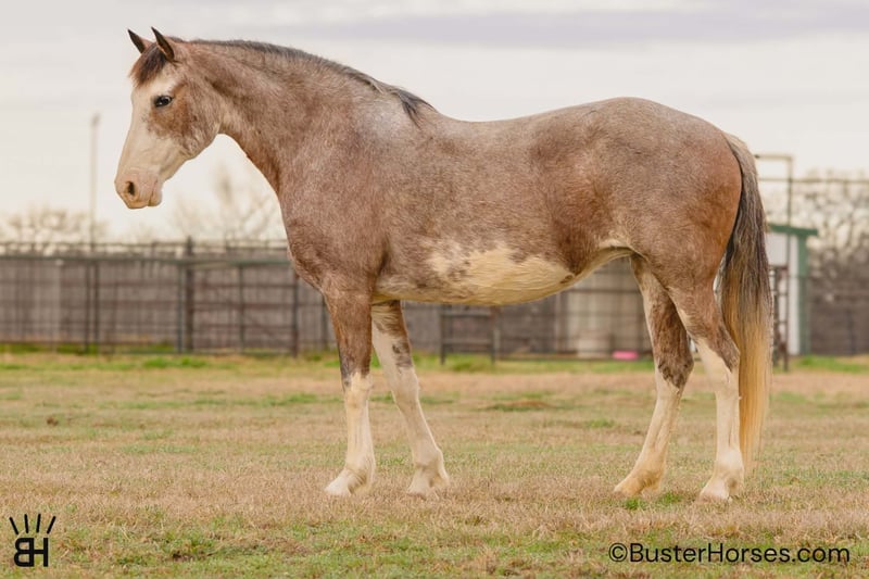 "AVAILABLE ON ONLINE HORSE AUCTION AT www DOT PlatinumEquineAuction DOT com BIDDING OPEN NOW thru SUNDAY | MARCH 1ST! *Final price will be determined on auction site* CONSIGNOR CONTACT INFO: Buster Horses 214-605-7174 LOCATION: Weatherford, TX Maivie is a gorgeous, loud-colored roan mare who’s truly one of a kind. She’s gaited, exceptionally smooth, and practically impossible to fall off of...if you can sit up and hold the reins, you can ride Maivie! She’s incredibly uncomplicated and easygoing, perfect for a new rider or someone who wants a fun, grab-and-go partner. Her previous family only rode her a handful of times a year, and she’s always been the same steady horse every single time. She is a great build and just the right size easy to saddle easy to step on and off of at 14.3 hands! Maivie excels on trail rides and is equally comfortable walking with non-gaited horses or gaiting out naturally when asked. She’ll match whatever pace the group needs. Not only can she gait beautifully, but she’ll lope as well. She’s surefooted, kind, and stands patiently at the mounting block or anywhere you put her. She rides out comfortably and confidently alone and in a group - she has been in a ton of parades and been to town lots and she's extremely comfortable around cars and traffic in town! Truly, she’s a sweetheart who is just easy to get along with in every way - if they were all this easy our job would be so incredibly uncomplicated! You just grab this one, saddle, hop on - and go! Please check out Buster Horses’ social media pages for additional photos and videos that will be posted leading up to sale day, and don’t hesitate to reach out with any questions. Maivie is located in Weatherford, TX – one hour from Dallas / Fort Worth International Airport. He is an easy day trip, or fun overnight trip to come and try out, from anywhere! We are experienced, knowledgeable sellers, and we can help with quickly arranging affordable shipping to any buyer’s location – we have experience shipping worldwide – including regularly to Hawaii, Canada, Mexico, Europe, and South Africa. Call Ashley with Buster Horses 214-605-7174 MORE pictures and videos at: BusterHorses.com Located in Weatherford, TX ~ West of Fort Worth, TX 1 hour from Dallas / Fort Worth International airport …and we can help with quickly arranging affordable shipping to any buyer’s location ~
