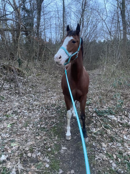 Bitte erst alles (!) lesen und nur wenn wirklich alles passt, sehr gerne melden! Platz vor Preis! Wenn wirklich alles passt, gebe ich meine Paint Stute (o.P.) in allerbeste Hände und artgerechte Haltung ab. Sie ist 13 Jahre alt, ca. 1,60m und ein ganz besonderes Pferd. Sie ist ein absolut rangniedriges und soziales Pferd, das so gerne einen Kumpel zur Fellpflege haben möchte. Gegenüber dem Menschen ist sie allerdings oft ein echtes „grumpy horse“ mit Nähe-Distanz-Problem. Daher nur in erfahrene und konsequente Hand, nicht für Kinder – und auf gar keinen Fall an Personen, die sie mit Druck und Macht „überzeugen“ wollen. Auf Druck reagiert sie mit gesteigerten grumpy-Attacken. Da sich ihr Verhalten bei Boxenhaltung verschlechtert, gebe ich sie nur… -> in Offenstallhaltung, -> mit fairen Artgenossen/Pferdegesellschaft, -> ausreichend Liege- Unterstell und Rückzugsmöglichkeiten und -> 24/7 Zugang zu Heu. Ich wünsche mir ein „für-immer-zu-Hause“ - Sie soll kein Wanderpokal werden! Sie hat einige Baustellen, daher hatte sie eine lange Pause und wird als bedingt reitbar verkauft. Rassetypisch ist sie weich gefesselt und positiv in der Beugeprobe. Anfang des Jahres machte ihr ein negativer Palmarwinkel / Hufbeinfehlstellung des Vorderfußes Probleme, der lange nicht diagnostiziert wurde. Durch die Fehlbelastung folgte eine beidseitige Sehenschneidenentzündung der Fesselbeugesehnen. Seit August läuft sie wieder lahmfrei. Mit Kunststoffbeschlag kommt sie nun gut zurecht, so dass sie seit ein paar Wochen wieder langsam im Gelände geritten wird. Sie wird kein 100% belastbares Reitpferd mehr werden können und ist auch nicht zur Zucht geeignet. Kein Gewichtsträger! Für Hallen-/Platzarbeit, reiten auf tiefem Boden oder mit vielen Wendungen oder auch fürs Longieren ist sie aufgrund der weichen Fesselung nicht (!) geeignet. Auf hartem Boden und geraden Strecken ist sie aber eine wunderbare Partnerin für gemütliche Geländeritte. Sie ist Western geritten. Im Gelände ist sie sicher und ein absolutes Verlasspferd: Ich reite sie immer gebisslos. Sie läuft alleine, auch auf völlig fremden Strecken, mit oder als Handpferd und war auch nach längeren Pausen immer brav und ist nicht schreckhaft. Insgesamt ist sie eher von der gemütlichen Sorte und eher etwas büffelig. Sie ist sehr klug und witzig. Sie kann einige Kunststückchen und wäre sicherlich von Zirkuslektionen und mehr zu begeistern. Spazieren gehen wir nur mit Halfter. Von Alltagsgeräuschen über Kettensägen bis zu Baustellenlärm – sie hat bisher nichts so schnell aus der Fassung gebracht. Beim Schmied und auch beim Tierarzt war sie immer brav. Ihre verhaltensoriginelle Seite hat sie sich bisher immer für uns aufgehoben ;)… Verladen? Für Futter tut sie fast alles ;)… Sie ist zwar länger nicht gefahren, aber ich habe regelmäßig Verladetraining mit ihr gemacht. regelmäßig geimpft, entwurmt und beim Schmied (4-fach Kunststoffbeschlag) Zähne gerade gecheckt Aktuelles Blutbild chiropraktische Vorstellung Anfang 2025 Es ist kein Notverkauf – ich suche für sie das perfekte „für-immer-zu-Hause“! Wenn du dir vorstellen kannst, meiner Paint Stute ein 5***** zu Hause zu geben und ihren Besonderheiten gerecht zu werden, freue ich mich über deine Nachricht -bitte mit vollständigem Namen und kurzer Vorstellung des künftigen zu Hauses ;). Komplettes Zubehör, inkl. eines passenden Westernsattels, kann miterworben werden.