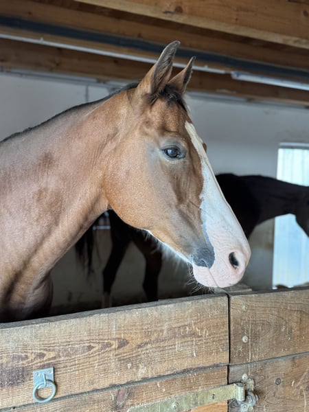 Veuillez tout lire attentivement et ne me contacter que si tout vous semble parfaitement en ordre ! Priorité au bien-être plutôt qu’au prix ! Si tout correspond, je confie ma jument Paint (non montée) à des mains expertes et pour une garde respectueuse de ses besoins. Elle a 13 ans, environ 1,60 m et c’est un cheval très spécial. C’est une jument très calme et sociale, qui aimerait beaucoup avoir un compagnon pour le pansage. En revanche, elle peut parfois être une vraie « grumpy horse » avec l’humain, ayant des difficultés avec la proximité et la distance. Elle n’est donc pas adaptée aux enfants, ni à des personnes qui voudraient la « convaincre » par la force ou la pression. En réponse à la pression, elle peut réagir par des accès de grumpiness plus marqués. Son comportement s’aggrave en box, c’est pourquoi je ne la confie qu’en : -> paddock extérieur, -> avec des compagnons équins compatibles, -> suffisamment de foin, de refuges et de possibilités de retrait, -> accès 24/7 au foin. Je souhaite lui trouver un « pour toujours » – elle ne doit pas devenir un trophée ou un objet de collection ! Elle a quelques « points sensibles », ce qui explique sa longue pause et sa vente en conditionnelle pour la reprise de la monte. Typiquement, elle est souple dans le filet et positive lors de la flexion. Au début de l’année, un angle palmaire négatif / une mauvaise position du boulet du pied antérieur lui ont causé des problèmes, longtemps non diagnostiqués. La surcharge a entraîné une inflammation des tendons fléchisseurs des jarrets des deux côtés. Depuis août, elle ne boite plus. Avec des fers en résine, elle s’en sort bien, et elle a repris doucement le travail en extérieur depuis quelques semaines. Elle ne pourra plus devenir un cheval de sport à 100 % et n’est pas adaptée à la reproduction. Ce n’est pas un cheval porteur de poids ! Pour le travail en manège ou en carrière, sur terrain mou ou avec beaucoup de changements de direction, ou encore pour le travail à la longe, elle n’est pas adaptée à cause de la faiblesse de ses tendons. En revanche, sur terrain dur et en ligne droite, c’est une partenaire idéale pour des promenades tranquilles. Elle est montée en style western. En extérieur, elle est sûre et une partenaire de confiance : je la monte toujours sans mors. Elle avance seule, même sur des parcours inconnus, en main ou en liberté, et après de longues pauses, elle reste toujours calme, sans être peureuse. Elle a plutôt une nature tranquille et un peu pataude. Très intelligente et amusante, elle connaît quelques tours et pourrait être très intéressée par des exercices de cirque ou d’autres tricks. Nous ne faisons que des promenades en licol. Elle n’a pas été impressionnée par les bruits quotidiens, les tronçonneuses ou le bruit des chantiers – jusqu’à présent, rien ne l’a fait paniquer. Elle a toujours été sage chez le maréchal-ferrant et chez le vétérinaire. Son côté un peu caractériel, elle le réserve pour nous ;)… Pour la charger dans le van ? Elle fait presque tout pour une friandise ;)… Elle n’a pas été chargée récemment, mais je fais régulièrement des entraînements de chargement avec elle. Vaccinée régulièrement, déparasitée, ferrée avec un ferrage en résine (4 points). Dents vérifiées et en bon état. Bilan sanguin récent. Visite chiropratique prévue début 2025. Ce n’est pas une vente d’urgence – je cherche pour elle un « chez-soi pour toujours » parfait ! Si vous pouvez offrir à ma jument Paint un logement 5 étoiles et respecter ses particularités, je serai ravie de recevoir votre message – merci d’envoyer votre nom complet et une brève présentation de votre projet d’accueil ;). L’équipement complet, y compris un selle western adapté, peut être acheté avec elle.