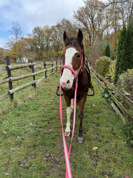 Gelieve alles goed te lezen en alleen te reageren als alles echt klopt! Plaats boven prijs! Als alles echt klopt, geef ik mijn Paint merrie (o.P.) in de allerbeste handen en voor een diervriendelijke verzorging. Ze is 13 jaar oud, ongeveer 1,60 m en een heel bijzonder paard. Ze is een absoluut ranglaag en sociaal paard dat graag een vriendje wil voor de vachtverzorging. Tegenover mensen is ze echter vaak een echte „grumpy horse“ met afstand- en nabijheidproblemen. Daarom alleen voor ervaren en consequente handen, niet voor kinderen – en zeker niet voor mensen die haar met druk en macht willen „overtuigen“. Bij druk reageert ze met verhoogde grumpy-aanvallen. Omdat haar gedrag bij stalling verslechtert, geef ik haar alleen... -> in een open stal, -> met een eerlijke soortgenoot/paardenvriend, -> voldoende lig- en schuilmogelijkheden en -> 24/7 toegang tot hooi. Ik wens haar een „voor- altijd- thuis“ – ze mag geen wisselpaard worden! Ze heeft enkele problemen, daarom heeft ze een lange pauze gehad en wordt ze als beperkt berijdbaar verkocht. Ras typisch is ze soepel en positief in de buigproef. Begin dit jaar had ze problemen met een negatieve palmarwinkel / hoefbeenvorstand van het voorbeen, die lange tijd niet was vastgesteld. Door de verkeerde belasting ontwikkelde zich een ontsteking van de peesschachten aan beide zijden van de buigpees. Sinds augustus loopt ze weer kreupelvrij. Met kunststofbeslag gaat ze nu goed om, zodat ze sinds een paar weken weer langzaam in het terrein wordt bereden. Ze zal geen 100% betrouwbaar rijpaard meer kunnen worden en is ook niet geschikt voor de fokkerij. Geen gewichtsträger! Voor binnen- en buitenritten, rijden op zacht terrein of met veel bochten, of voor het longeren, is ze vanwege haar zachte pezen niet (!) geschikt. Op harde ondergrond en rechte stukken is ze echter een prachtige partner voor ontspannen buitenritten. Ze wordt western gereden. In het terrein is ze veilig en een absolute betrouwbare partner: ik rijd haar altijd bitloos. Ze loopt zelfstandig, ook op volledig onbekende routes, met of als handpaard, en was ook na lange pauzes altijd braaf en niet schrikachtig. Over het algemeen is ze meer van de rustige soort en wat lummelig. Ze is zeer intelligent en grappig. Ze kan enkele kunstjes en zou zeker enthousiast zijn over circuslektionen en meer. We gaan alleen te voet met halster wandelen. Van alledaagse geluiden tot kettingzagen en bouwlawaai – ze heeft tot nu toe niets snel van de leg gebracht. Bij de hoefsmid en ook bij de dierenarts was ze altijd braaf. Haar gedragsmatige eigenaardigheden heeft ze zich tot nu toe altijd voor ons bewaard ;)... Verladen? Voor eten doet ze bijna alles ;)… Ze is wel een tijdje niet vervoerd, maar ik heb regelmatig verladings-oefeningen met haar gedaan. Regelmatig gevaccineerd, ontwormd en bij de hoefsmid (4-punts kunststofbeslag). Tanden gecontroleerd. Actueel bloedbeeld. Chiropractische check begin 2025. Het is geen noodgeval – ik zoek haar het perfecte „voor- altijd- thuis“! Als je je kunt voorstellen om mijn Paint merrie een 5***** thuis te geven en haar bijzonderheden te respecteren, hoor ik graag van je – graag met volledige naam en een korte introductie van de toekomstige thuisbasis ;). Compleet accessoires, inclusief een passende westernzadel, kunnen mee worden gekocht.