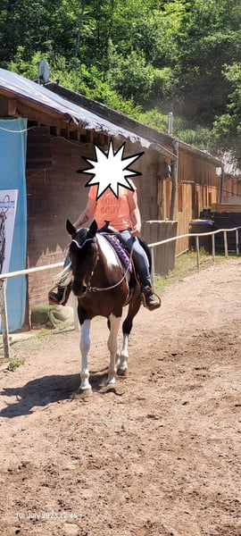 For sale: my 14-year-old mare, father Paint Horse, mother Arabian. Height: 1.53m Brown and white spotted. Not a beginner's horse! PSSM 1, but with the right feeding (grain-free) and exercise, she has no problems. She is more of a stable horse with a paddock as she is quite dominant and unsocial unless she finds her right partner. Microchipped. Regularly dewormed, vaccinated, and has had farrier and dentist care. She can be the cool Paint but also the hot-blooded Arabian. Not a forced sale; she will only be sold if it’s a good match. Can be ridden beforehand or trial ridden. To avoid riding tourism, I charge a fee of €30, which will of course be deducted from the purchase price.