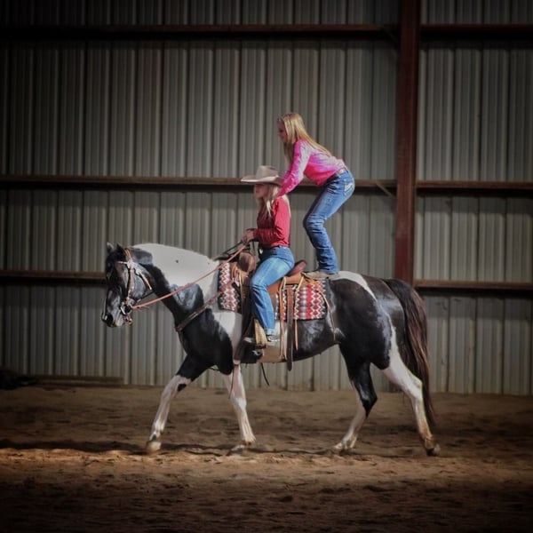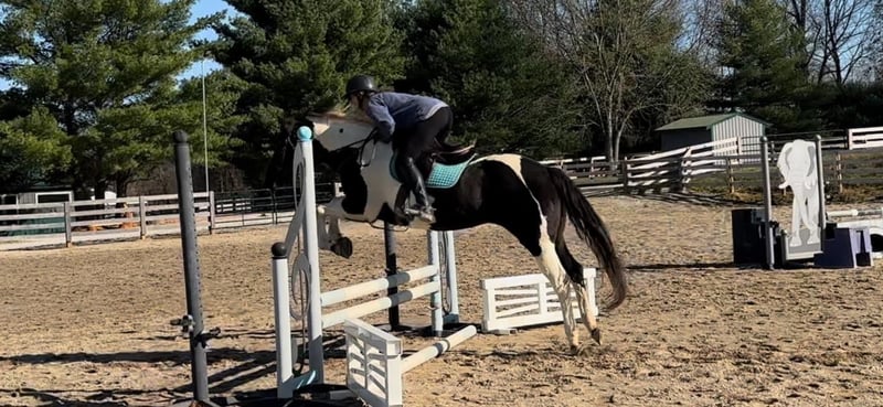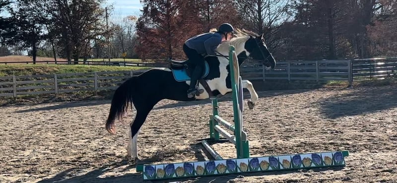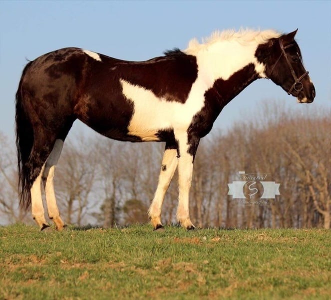 ONLINE AUCTION Place your bids at www.PlatinumEquineAuction.com Starting Bid $3500 Auction ends July 7th, 2024 Need a new saddle? Check out White Rock Saddles on our website or Facebook! Judges First Angel (Tibby) 2010 Reg. APHA 15 h Black / White Mare If I was asked to explain what a well rounded versatile horse was, I would just describe our mare Tibby. She is that great blend of nice conformation (that promotes soundness), good minded, and shines both inside and out of the arena. She has had extensive training in both western and English disciplines. Tibby has been used for many different jobs at our farm from lessons, showing, trail riding, and is ready to be someone’s ranch horse if that’s the direction they wish to go. When it comes to English riding Tibby is all class with her floaty trot and beautiful form over fences. She is currently jumping around 2’6” courses with flying or simple lead changes. She has earned several Championships and Reserve Championships at the shows with her riders. Tibby also has that Western grit to her and has a great handle. We have thrown a rope off her, and she shows lots of potential to make a great ranch horse. She does not mind tarps, pulling logs, going through gates, and has been exposed to cattle. She would be an exceptional 4H horse for the rider who likes to do it all, and is quality enough to be shown on the breed circuit as well. Tibby is not all show, she is a well seasoned trail horse and has been one of our go to trail horses for those long trips. We just recently got back from a week long trip to Eminence, MO. She really allows you to enjoy yourself while trail riding, crosses water: creeks and rivers, handles all type of steep and rough terrain with no issues, and it doesn’t matter if you like to lead the group or bring up the rear. She is not spooky or reactive and rides down the road like a pro. Tibby is sound, requires no maintenance, no vices, and is up to date on farrier, coggins, deworming, and vaccinations. She is easy to tack up, stands for all grooming, loads/ unloads easily. Tibby is a true all around horse that isn’t limited to just riding in the arena or only for trail riding. She is ready to go and the sky is the limit on what all you can do with her. For more information please call or message Cara Thomas 812-704-6388 located in Borden IN. ONLINE AUCTION Place your bids at www.PlatinumEquineAuction.com Starting Bid $3500 Auction ends July 7th, 2024 Need a new saddle? Check out White Rock Saddles on our website or Facebook!