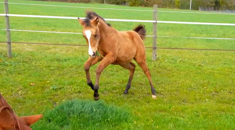 Ivy is accustomed to daily handling and remains a cautious and reserved mare with the necessary respect. She interacts calmly and with interest with dogs, tractors, children, and everything related to everyday life. Under halter, she is gentle and eager to learn. We place great importance on tailored feeding, mineral supplementation for both mare and foal, as well as regular farrier visits and deworming.