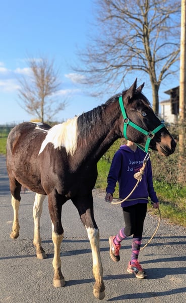 🐎 Superbe pouliche Paint Horse – 2025 – Pie noir – Fort potentiel Nous proposons à la vente une pouliche American Paint Horse de grande qualité, née en 2025, inscrite avec papiers complets (APHA). ✨ Robe : Pie noir – marquages harmonieux et attractifs ✨ Sexe : Pouliche ✨ Localisation : France/occitanie 💎 Cette pouliche se distingue par son modèle très correct, une belle ligne du dessus, de l’os et un excellent équilibre. Elle allie élégance, locomotion et présence. 🧠 Caractère : Manipulée régulièrement, respectueuse et curieuse. Elle présente un bon mental et une attitude volontaire, idéale pour une valorisation sérieuse. 🎯 Aptitudes : Disciplines western (reining, trail, all-around) Élevage de qualité Cheval de loisir haut de gamme 📄 En règle : identifiée, papiers à jour 📸 Photos et vidéos professionnelles disponibles sur demande 🚚 Transport possible en France ⭐ Élevée dans un programme professionnel, avec une attention particulière portée à la qualité, à la santé et à la manipulation précoce ⭐ Contact sérieux uniquement
