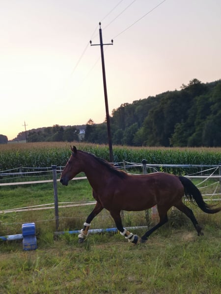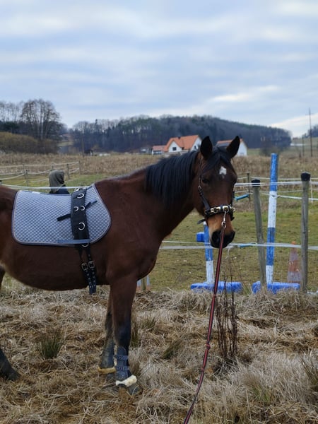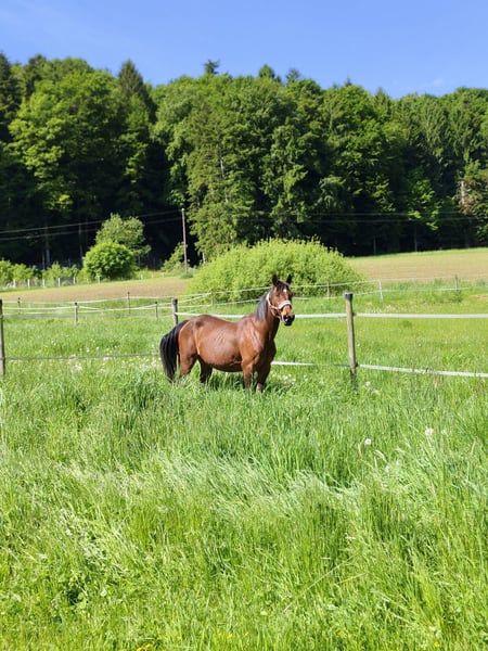 With a heavy heart, I want to sell my first horse. I bought Daphne a little over a year ago. Originally, I was told she was a great schoolmaster and perfect for beginners. Unfortunately, this has not proven to be the case. She was sold to me as fully rideable, which is also not accurate. Due to a damaged back, she is no longer suitable for riding. She will only be sold to a good home. Stallion-friendly, open stable management only. Not compatible with other mares. Despite her age, she still enjoys being moved and entertained, so groundwork and handling are still possible. She is a bit independent and definitely not suitable for beginners. Additionally, she is quite often in heat and exhibits some stallion-like behavior. Under no circumstances is she rideable. If desired, she can be sold with accessories such as various halters, lead ropes, lunging girth, boots, and bandages. I wish for Daphne (as we affectionately call her) to find a lovely final home in an open stable with a gelding, possibly on a mountain pasture. Price is negotiable and the well-being of the horse comes first.