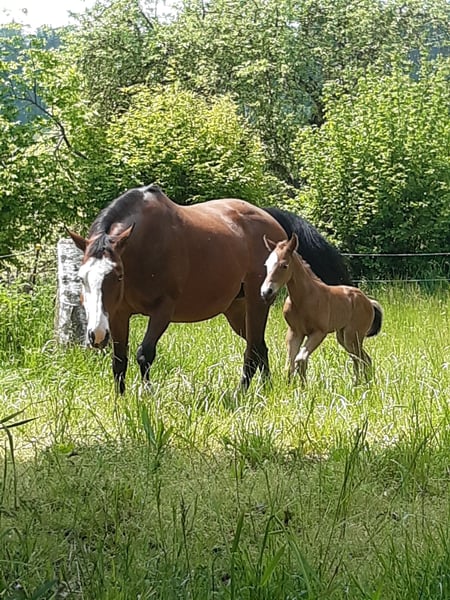 A vendre, une magnifique jument Paint Horse née en 2023. Avec son impressionnante liste, elle attire tous les regards. Cette jument se distingue par son caractère aimable et équilibré. Elle est très proche de l'homme et se montre toujours attentive et désireuse d'apprendre. Son pedigree ne laisse rien à désirer et promet beaucoup de potentiel. Elle convient aussi bien aux cavaliers de loisir ambitieux qu'au sport western. Cette jument est en parfaite santé et régulièrement vermifugée. Sur les parents N/N Papier original de l'APHA et passeport équin Si vous êtes à la recherche d'un cheval fiable et affectueux qui vous enthousiasmera aussi bien dans le sport que dans la vie quotidienne, cette jument Paint Horse est faite pour vous. Nous nous réjouissons de vous rencontrer ! Volontiers par téléphone, l'e-mail prend plus de temps.
