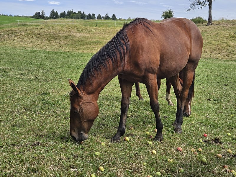 Zum Verkauf steht eine bildschöne Paint Horse Stute aus dem Jahr 2023. Mit ihrer markanten Blesse ist Smile ein echter Blickfang, der sofort ins Auge fällt. Eckdaten: Geburtsjahr: 2023 Papiere: Original APHA-Papiere & Equidenpass Genetik: Über Eltern N/N Gesundheit: Kerngesund, regelmäßig entwurmt Charakter & Potenzial: Smile überzeugt mit einem freundlichen, ausgeglichenen Wesen und ist sehr menschenbezogen. Sie zeigt sich stets aufmerksam, lernwillig und bringt eine Abstammung mit, die keine Wünsche offenlässt – beste Voraussetzungen für eine erfolgreiche Zukunft. Einsatzmöglichkeiten: Ob ambitionierter Freizeitreiter oder Westernsport – Smile ist vielseitig einsetzbar und bereit, mit ihrem neuen Besitzer gemeinsam durchzustarten. Fazit: Ein zuverlässiges, liebevolles Pferd, das sowohl im Sport als auch im Alltag begeistert. 📞 Am besten telefonisch kontaktieren