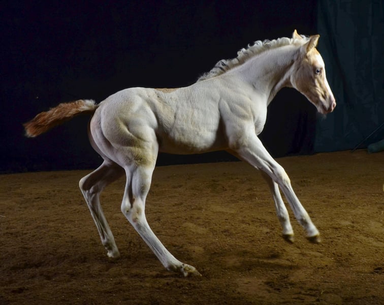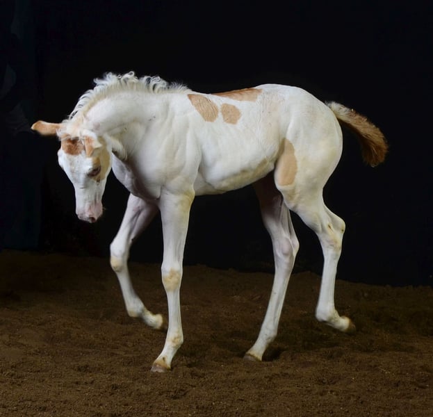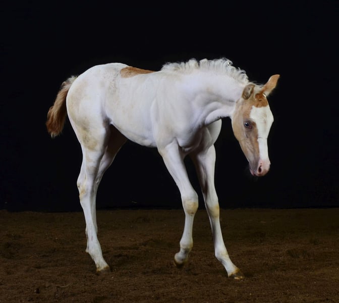 Lyria è una bellissima puledra Paint Horse in Gold Dun Champagne Tovero, con due occhi blu acciaio. Nata il 03.06.2023 È coccolona, dolce e ben educata. Le piace mettere lo zoccolo sull'acceleratore e sfrecciare nel paddock. Mostra il suo incredibile talento nel controllo della velocità, nei cambi di canter e nelle fermate! Ha 7 pannelli N/N grazie ai suoi genitori. Lyria ha vinto la mostra di allevamento PHCG con un punteggio complessivo di 8,0.