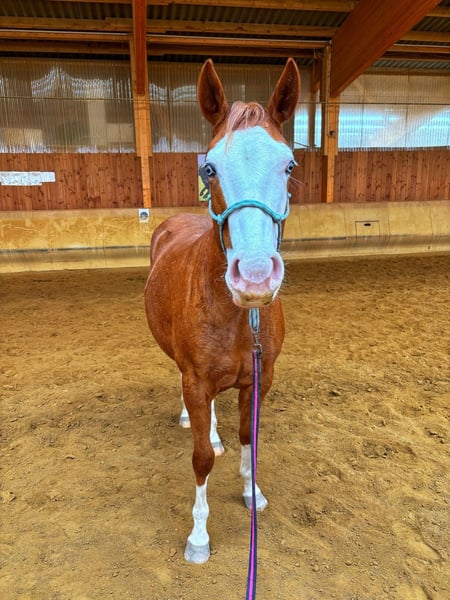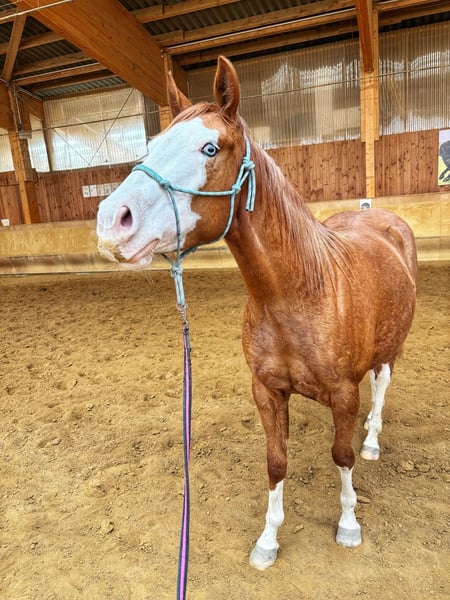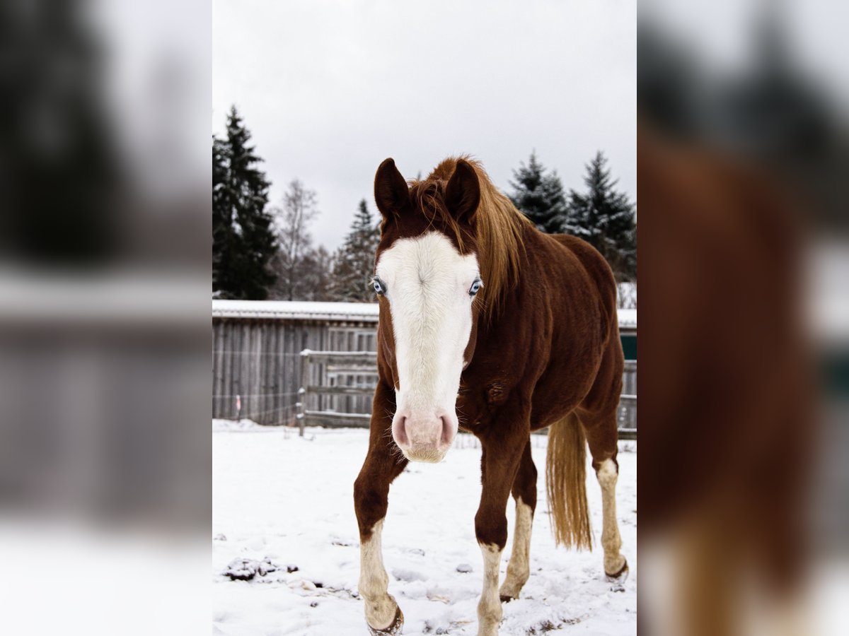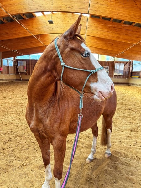 Zum Verkauf steht eine ausdrucksstarke American Paint Horse Stute, geboren am 12.05.2023, in auffälliger Chestnut-Overo Zeichnung mit blauen Augen – ein echter Blickfang. Die junge Stute überzeugt nicht nur durch ihre besondere Optik, sondern auch durch ihre interessante Abstammung mit Reining-Bezug und bringt damit beste Voraussetzungen für eine sportliche Zukunft mit. Sie ist altersgerecht gearbeitet und läuft sicher an der Longe in allen drei Gangarten. Dabei zeigt sie bereits erste Tempounterschiede im Trab sowie eine gute Arbeitseinstellung und Lernbereitschaft. Erste Gewöhnung an den Sattel hat bereits stattgefunden. Im Umgang präsentiert sie sich freundlich, menschenbezogen und unkompliziert. Sie ist gut sozialisiert und klar im Kopf – eine ideale Basis für die weitere Ausbildung. Aufgrund ihres Alters steht sie noch am Anfang ihrer Entwicklung und eignet sich besonders für jemanden, der sich ein junges Pferd selbst weiter ausbilden möchte. Mit ihrer Kombination aus auffälliger Optik, solider Abstammung und gutem Charakter bietet sie viel Potenzial für Reining sowie andere Western-Disziplinen. Bei ernsthaftem Interesse gerne weitere Informationen sowie Termin zur Besichtigung.