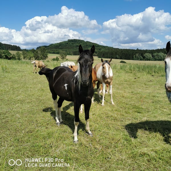 Aus unserer EBONY EIN STUTPFOHLEN Sie ist noch etwas zierlich ,aber sie wird noch wachsen . Das wunderschöne Fohlen ist das letzte aus der Stute EBONY die hier auch angeboten wird, zum Verkauf !!!!! Sie ist auch noch sehr ängstlich ,,und vorsichtig, aber jetzt sind alle abgesetzt und so haben wir viel mehr Kontakt zu den Pferden ,als wenn sie alle auf weiten wiesen in der Herde laufen , DIE MUTTER VERKAUFEN WIR AUCH DA WIR DIE ZUCHT AUFGEBEN !!!!!!!!!!!!!!! JETZT SIND ALLE UNSERE BABYS DA ;es sind 3 Jungs und 1 Mädchen in dem Jahrgang , Sie ist garantiert Reinerbig ,das sieht man an den Flecken ,,das heißt sie macht bunte Fohlen wenn sie mal tragend werden sollte, ES WIRD EIN VBERLASSPFERD WERDEN ;;WIE DIE 3 LETZTEN AUCH !!!!und wir von jeder PERSON zu reiten sein !!!!!!!!!!!!!!!!!!!!!!!!!!!!!!!! FÜR WEITERE INFOS GERN ANRUFEN ; 06495 10445