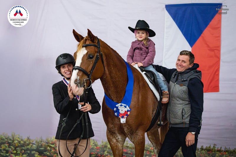 Angeboten wird eine Paint Horse Stute, geboren im Juni 2021. Sie ist eine sanfte, äußerst vielseitige Athletin, die bereits in mehreren Disziplinen erfolgreich war, darunter In-Hand Trail (IHT), Halter und Longe-Line. Letztes Jahr begann sie mit dem Reiten, erzielte eine Qualifikation und den Finaleinzug und wurde schließlich Čechischer Meister im HUS. Zudem hat sie erfolgreich an der Working Equitation teilgenommen. Sie liebt Springen 🤩. Sie ist die perfekte Partnerin für Bodenarbeit und Freiheitsdressur. Sehr ruhig, intelligent und für einen ehrgeizigen Reiter geeignet. Als bewährte Zuchtstute hat sie bereits ein Fohlen zur Welt gebracht und war eine großartige Mutter. Vollständige Gesundheitsgeschichte vorhanden. Röntgenaufnahmen aus 2023 sind im Archiv. Wir empfehlen eine ausführliche Vor-Kauf-Untersuchung durch Ihren eigenen Tierarzt vor dem Kauf. Viele Fotos und Videos vom Training und den Turnieren sind auf Anfrage per PM erhältlich. Standort in der Nähe von Prag, Tschechien 16🥕🥕🥕
