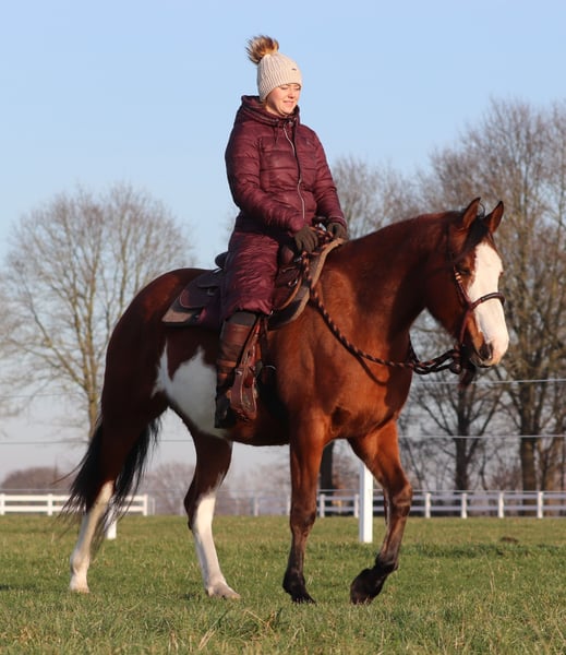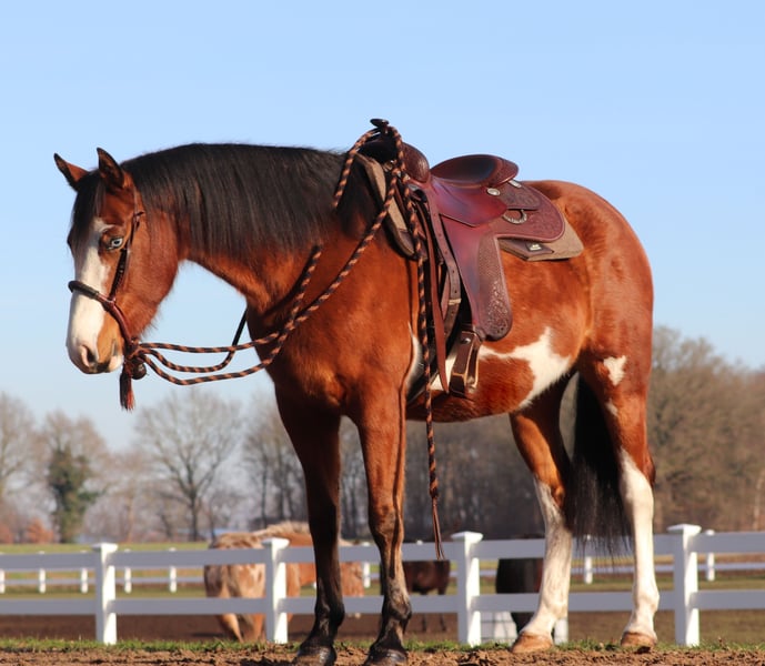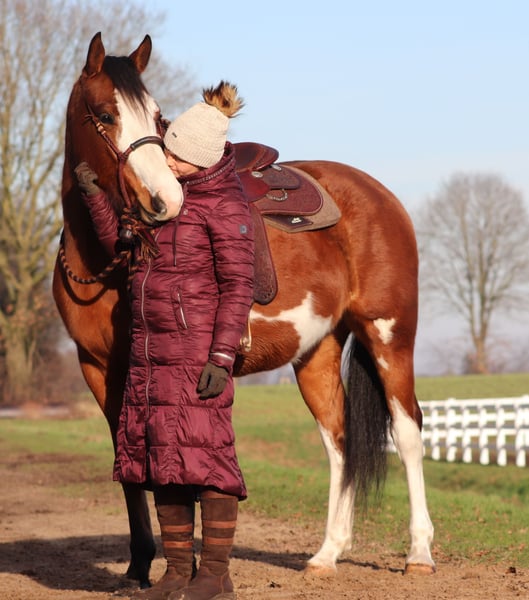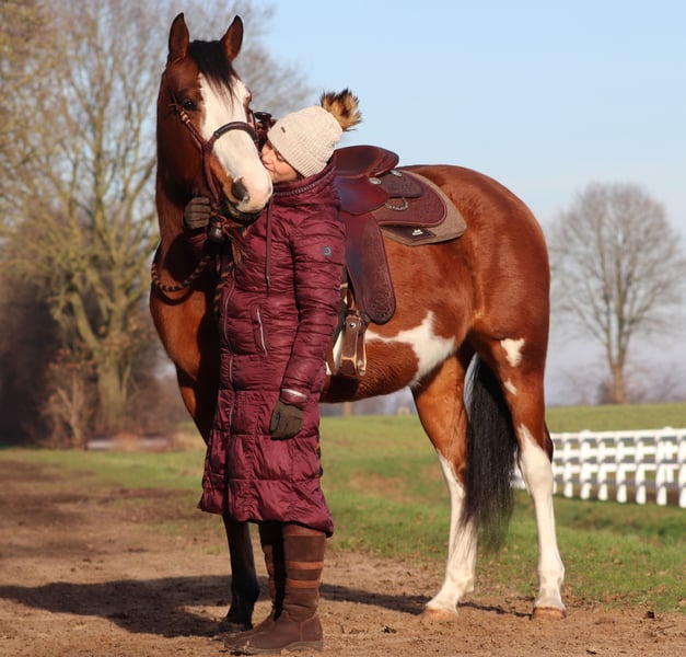 Lee ist eine wahre Schönheit – eine junge, liebevolle Stute mit einem ganz besonderen Charakter, der einen vom ersten Moment an verzaubert. Mit ihrem Stockmaß von ca. 1,55 m hat sie eine angenehme Größe und bringt sowohl optisch als auch charakterlich alles mit, was man sich von einem Herzenspferd wünscht. Sie ist nicht nur ein absoluter Hingucker, sondern trotz ihres jungen Alters bereits zuverlässig in allen drei Grundgangarten bei uns zu reiten. Lee zeigt sich dabei stets motiviert, feinfühlig und aufmerksam. Als zukünftiger Freizeitpartner ist sie ideal für Reiter, die sich einen vertrauensvollen und vielseitigen Begleiter wünschen – ganz gleich, ob im Westernreiten, in der Working Equitation oder bei entspannten Ausritten durch Wald und Flur. Lee ist talentiert und macht einfach Spaß – ein Pferd, mit dem man gemeinsam wachsen und viele schöne Momente erleben kann. Was Lee jedoch besonders auszeichnet, ist ihre enorme Lernbereitschaft. Sie ist eine echte „Musterschülerin“ – neugierig, aufmerksam und immer offen für Neues. Vor allem in der Freiarbeit und Zirzensik zeigt sie sich sehr feinfühlig und bemüht, alles richtig zu machen. Ihre ehrliche, menschenbezogene Art macht sie zu einer wunderbaren Partnerin, mit der die Arbeit nie langweilig wird. Lee ist ein echtes Allround-Pferd und für jeden Spaß zu haben. Besonders liebt sie es, in der Natur unterwegs zu sein. Ob am See oder auf ausgedehnten Waldausritten – bisher zeigt sie sich stets entspannt und zufrieden. Ganz gleich, ob alleine oder in der Gruppe: Mit Lee ist jeder Ausritt ein schönes Erlebnis. Ihre weichen, bequemen Grundgangarten machen das Reiten besonders angenehm, sie ist wunderbar zu sitzen. Auch im Alltag überzeugt sie mit ihrer aufmerksamen und dennoch ausgeglichenen Persönlichkeit. Lärm, spielende Kinder oder vorbeifahrende Autos beeindrucken sie bislang kaum – sie bleibt gelassen und souverän. Ihr liebevoller Umgang mit Menschen und ihre bemerkenswerte Leichtrittigkeit machen sie zu einem echten Schatz. Lee ist mehr als nur ein Pferd – sie ist eine treue Freundin, die jeden Tag aufs Neue begeistert. Für sie wünschen wir uns ausschließlich die allerbesten Hände, in denen sie weiterhin gefördert wird, Vertrauen erfährt und sich positiv entwickeln darf. Wenn du ein Herz für besondere Pferde hast und gemeinsam mit Lee viele Abenteuer erleben möchtest, dann könnte sie genau die richtige Partnerin für dich sein. Wir möchten ihr ein Zuhause schenken, in dem sie sich rundum wohlfühlt und weiterhin die Liebe und Aufmerksamkeit bekommt, die sie kennt. Daher wird sie ausschließlich in gute Hände abgegeben. Nach Absprache bringen wir sie gegen eine Spritpauschale gerne persönlich in ihren neuen Stall. Eine AKU kann selbstverständlich auf Wunsch durchgeführt werden. Ihr findet uns in 26899 Rhede. Die genaue Adresse teilen wir gerne nach einem persönlichen Gespräch mit. Telefonisch sind wir unter 0162 4348386 erreichbar. Für das Kennenlernen und Probereiten nehmen wir uns bewusst viel Zeit, damit alles in Ruhe und ohne Druck stattfinden kann. Um sicherzugehen, dass sich nur ernsthaft interessierte Personen melden und kein „Wochenendausflug“ daraus wird, erheben wir eine Aufwandspauschale von 50 €, die selbstverständlich beim Kauf vollständig angerechnet wird. Vielen Dank für euer Verständnis. 💛