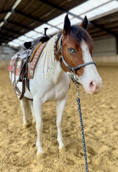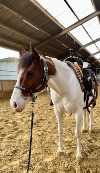 🦄 Te koop: Smart G Star Lizzy (2020) – Bay Tobiano APHA merrie 🦄 Op zoek naar een braaf, lief, betrouwbaar paard? Lizzy is een lieve en betrouwbare merrie die haar nieuwe beste maatje zoekt! ✨ Waarom Lizzy bijzonder is: • Zeer braaf bij buitenrijden, hoefsmid, dierenarts en wassen • Kan met of zonder bit/zadel gereden worden • Geschikt voor kinderen met basiservaring en iets onzekere ruiters alsook volwassenen • Actief, leergierig en doet nooit iets onverwachts • Cutting getraind, ideaal als recreatief western paard. Let op: Niet geschikt voor intensieve trainingen en wedstrijden met stops, spins en snelle wendingen. 🐴 Praktisch: • kent 24/7 buiten in kuddeverband staat hoger in rang. Staat nu in stalling. • Regelmatig ontwormd en geënt • 5-panel N/N door ouders • Mogelijk geschikt als kinderpony • Alleen trailer-laden • 1,37 m • Recente röntgenfoto’s 💌 Lizzy verdient een liefdevol huis waar ze net zo gelukkig is als bij mij. Stuur een bericht en vertel hoe zij bij jullie past!