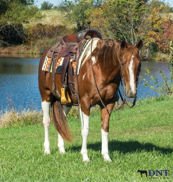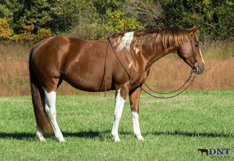 🎲𝓽𝓱𝓮 𝐑𝐈𝐃𝐄𝐑'𝐒 𝓒𝓱𝓸𝓲𝓬𝓮🎲 Happening now thru MONDAY | NOVEMBER 17th - Available EXCLUSIVELY on HorseBid's website! For more details and to register visit: www.Horsebid.com CONSIGNOR CONTACT: Tasha Ijames 270-844-2400 LOCATION: Henderson KY BREED: APHA REGISTERED: Yes REGISTERED NAME: Delta Olenas Shine COLOR: Chestnut and White Paint HEIGHT: 14.3 AGE: 7 GENDER: Mare Fancy APHA 2018 Delta Olenas Shine Fancy is a gorgeous 7 year old chestnut tobiano paint mare. Along with her cuteness, she is the perfect height standing at 14.3 hands tall and all the shape you could want. Fancy isn't just an eye catcher she is very well bred and goes back to the great cutting horse Doc O’Lena and is out of an own daughter of Shining Spark. She is very well broke and rides like one should. She will W/T/L, side pass and works off leg pressure. Fancy is absolutely broke for any level rider. She’s honest, gentle and safe. Fancy will walk all day if asked. She has a nice trot to her and transitions to a nice smooth lope. She neck reins with one hand, responsive to leg cues, backs and has a big stop when asked. You can ride her bareback with a halter or grass string if you want. Fancy will meet you at the gate wanting all the attention. She is out standing on the trails and has been trail ridden extensively through many different types of terrain. She is sure footed and honest. Fancy is not spooky and will cross creeks, go through any body type of water, thick brush, logs, bridges, rough terrain, up and down cliffs with ease. She has been rode on the road and is used to all kinds of traffic, heavy machinery and ATV’s. She is also dog safe. You can ride Fancy out alone with ease or with other horses. Fancy has also been used to sort and pen cattle at shows as well on the ranch. She will stand still for you to get on her from the ground or a mounting block. She stands to be groomed, fly spray, stands still to be saddled, takes the bridle with ease, bathes good, loads like a dream, clips great, and stands for the farrier. If you’re looking for that perfect horse for the family, please be sure to check her out. She’s looking for her forever home to please the whole family. We invite anyone and everyone to come meet and ride Fancy at our barn in Henderson, Kentucky. We are happy to assist with transportation arrangements. PPE are welcomed at buyers expense. For any questions about Fancy please contact Tasha 270-844-2400
